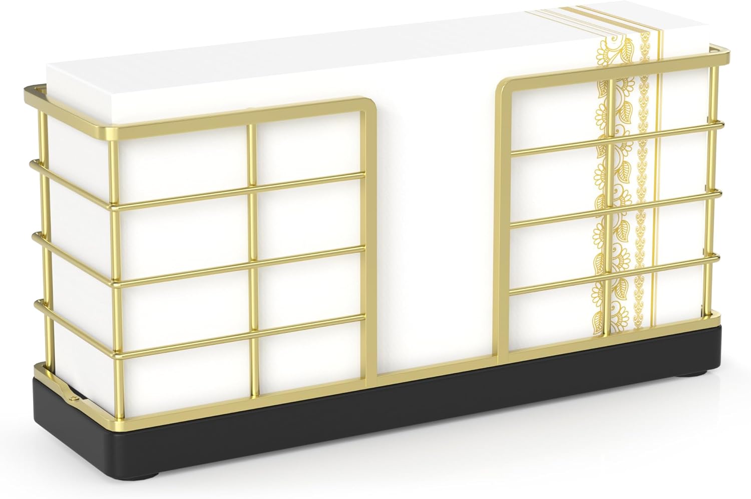 Wican Vertical Stance Bathroom Napkin Holder Takes Up Less Space for Small Guest Bathroom Oak and Iron Towel Tray for Powder Room Wooden Basket for Disposable Paper Hand Towels Golden and Black