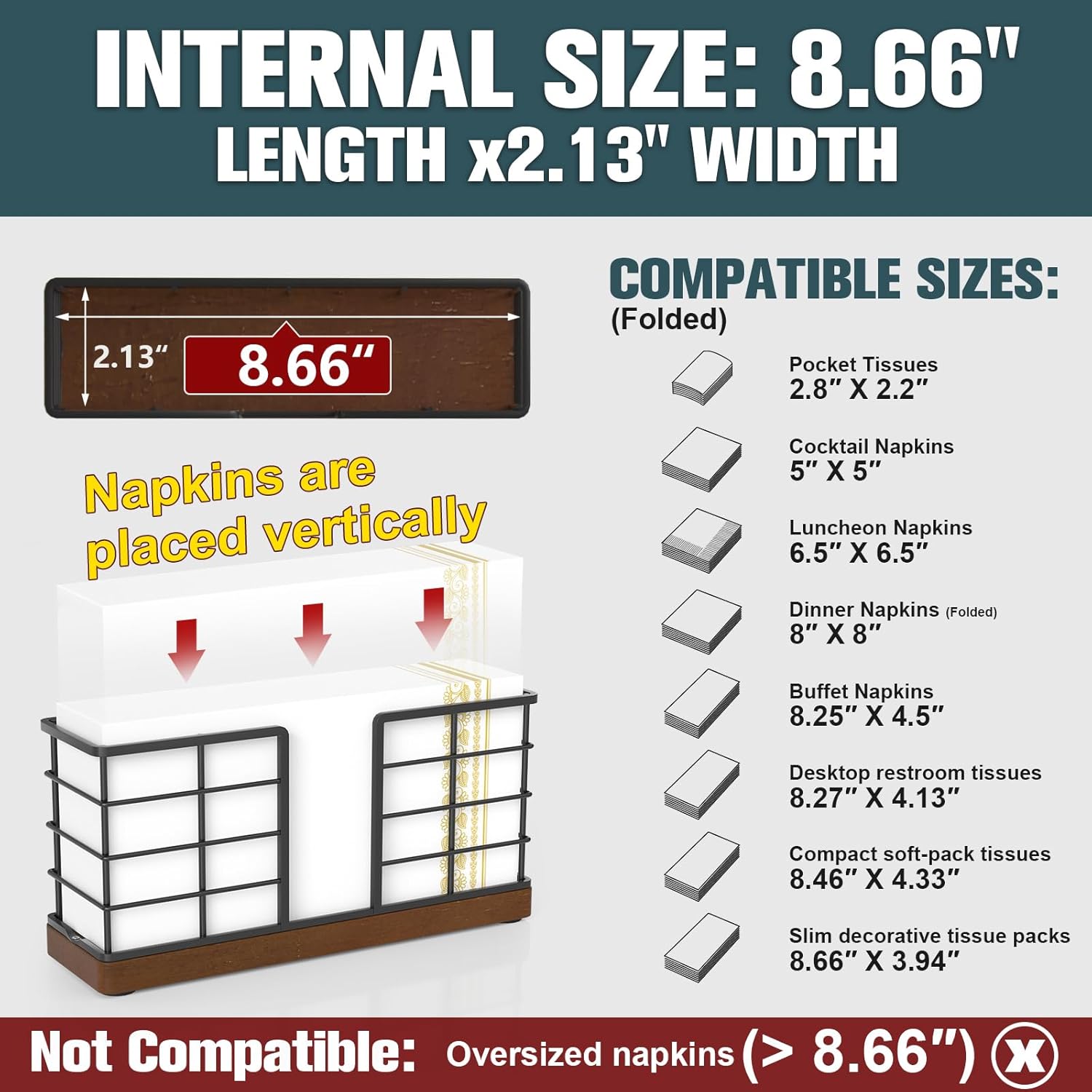 - Sized to Fit: The inner dimensions of the Bathroom Napkin Holder are 8.66" (length) x 2.13" (width), making it suitable for most standard guest towels and paper rolls. Napkins are stored vertically inside the holder, maximizing space and keeping them neat. It fits perfectly on the back of the toilet and is practical for year-round use