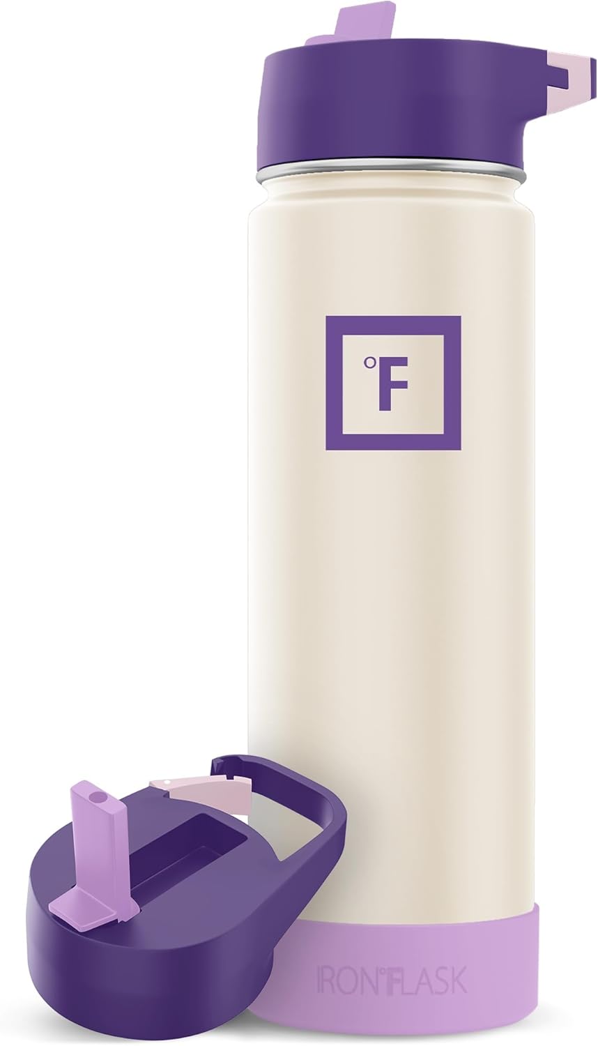 IRON °FLASK Camping & Hiking Hydration Flask with Straw Lid & Boot - Stainless Steel, Double Walled & Vacuum Insulated Water Bottle - Leak Proof & BPA Free (Cream & Berries, Straw - 22 oz)