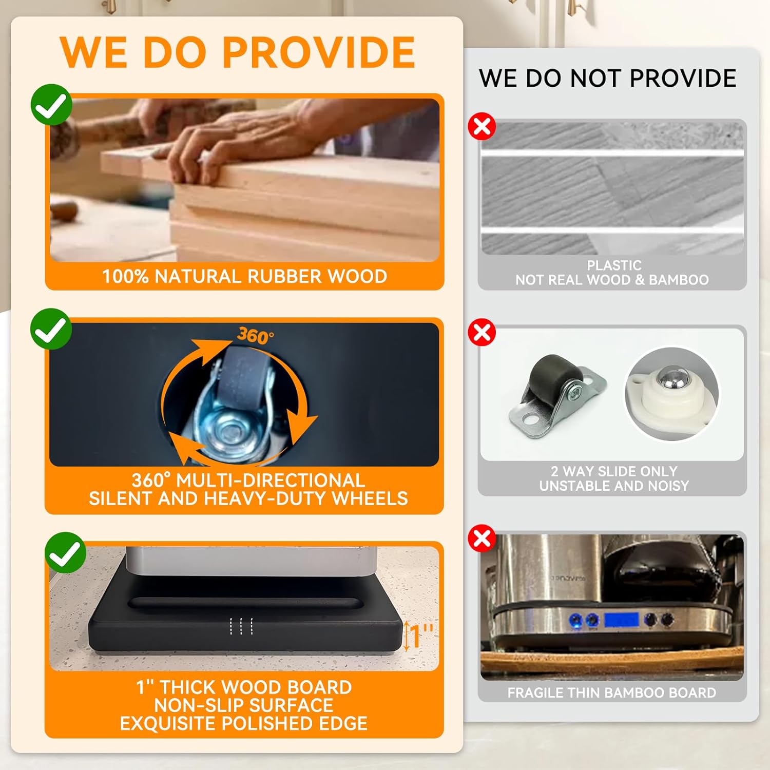 - 【Built to Last】: Crafted from an 1'' thick and durable wood board, this sliding tray for kitchen appliance is built to last. The sturdy construction can withstand the weight of various kitchen appliances without compromising on stability