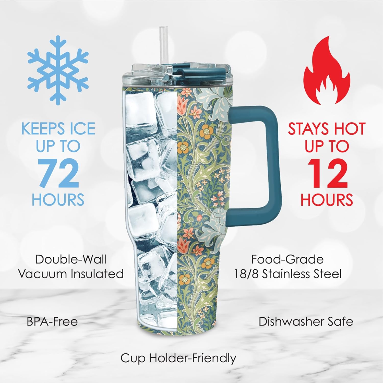 - STYLISH AND VERSATILE: The sleek, modern design of this water Tumbler makes it a fashionable accessory for any occasion. Whether you're hitting the gym, the office, school, or the trails, it's the perfect choice. Stunning rendering of William Morris famous artwork, "Golden Lily." The design is captured with an artist’s eye for detail, light, and color.