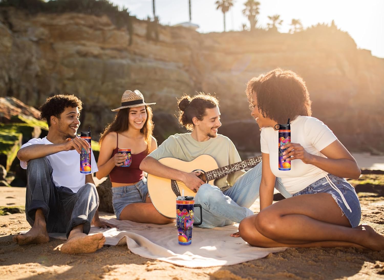 - STYLISH AND VERSATILE: The sleek, modern design of this water Tumbler makes it a fashionable accessory for any occasion. Whether you're hitting the gym, the office, school, or the trails, it's the perfect choice. Stunning rendering of Laurel Burch's famous painting, "Fantasticats." The design is captured with an artist’s eye for detail, light, and color.