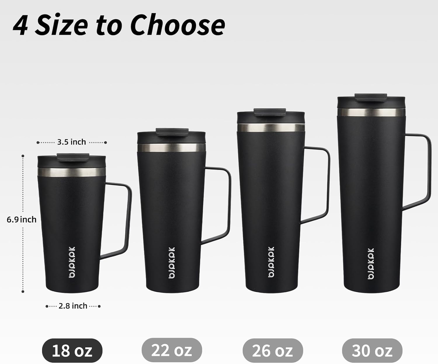 BJPKPK Insulated Tumbler with Handle, 18oz Insulated Tumblers with Lid and Straw, Stainless Steel Metal Water Bottles, Coffee Travel Mugs, Cups, Black