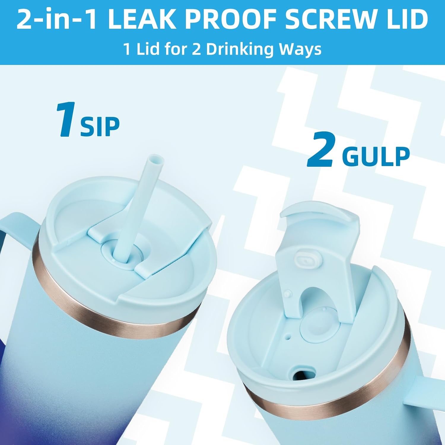 BJPKPK Insulated Tumbler with Handle, 22oz Insulated Tumblers with Lid and Straw, Stainless Steel Metal Water Bottles, Coffee Travel Mugs, Cups, Sky