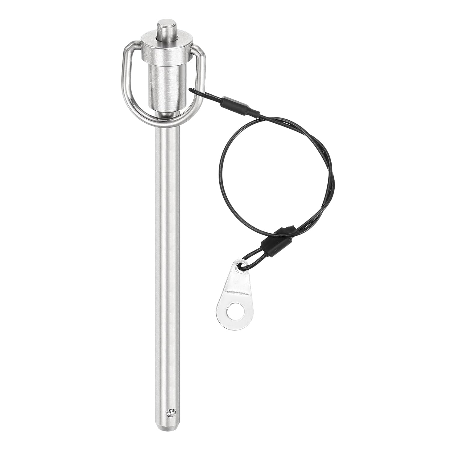 uxcell 1 Pcs Quick Release Pin, 5/16" x 4"(Dia. x L) Push-Button Ball Locking Pin 304 Stainless Steel Ring Handle Locking Pin with Wire for Audio Bimini Top Marine, Silver