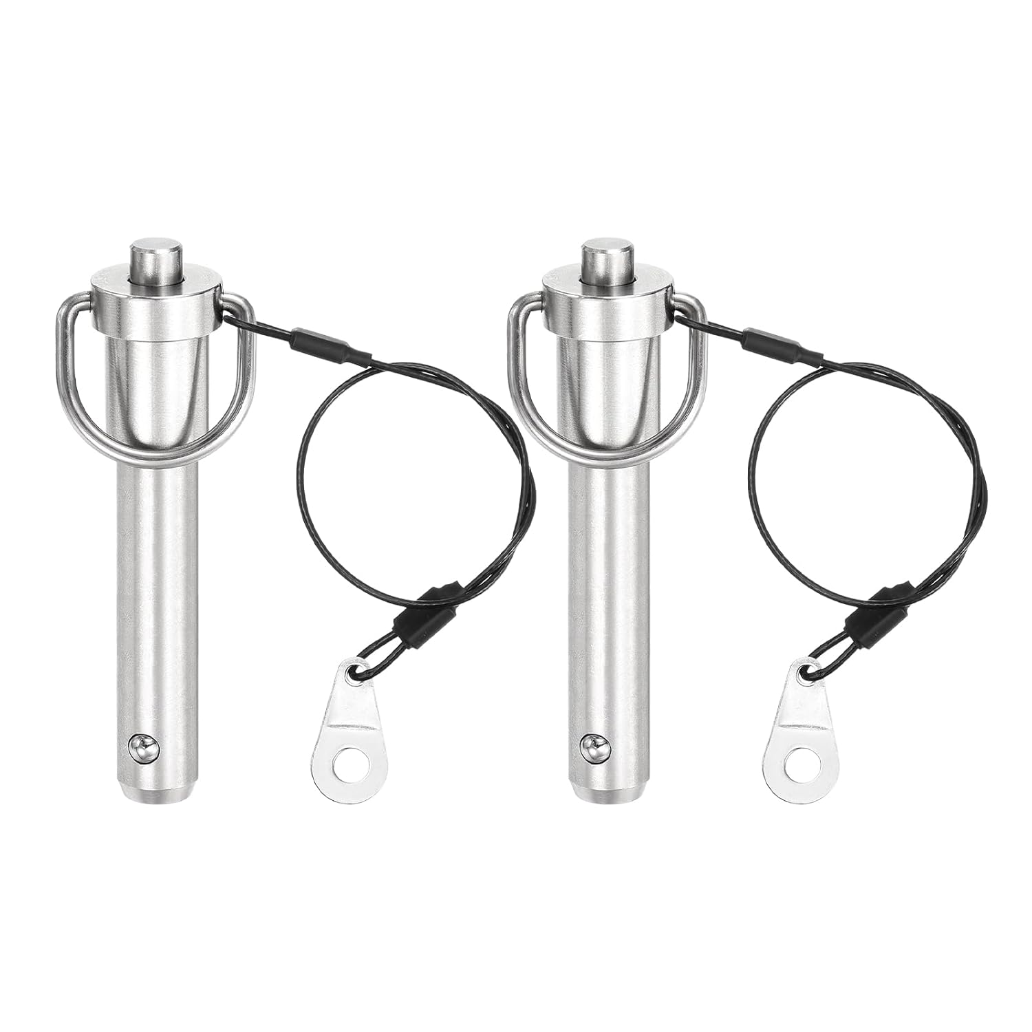 uxcell 2 Pcs Quick Release Pin, 1/2" x 1.77"(Dia. x L) Push-Button Ball Locking Pin 304 Stainless Steel Ring Handle Locking Pin with Wire for Audio Bimini Top Marine, Silver