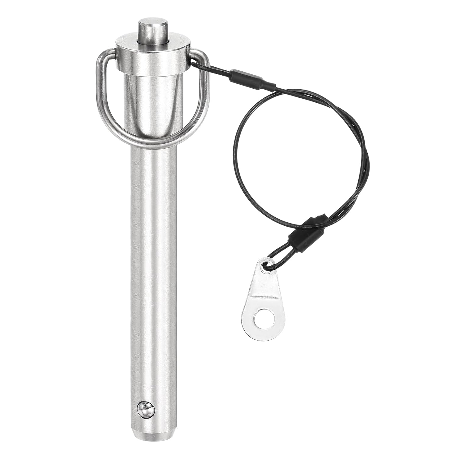 uxcell 1 Pcs Quick Release Pin, 1/2" x 3"(Dia. x L) Push-Button Ball Locking Pin 304 Stainless Steel Ring Handle Locking Pin with Wire for Audio Bimini Top Marine, Silver
