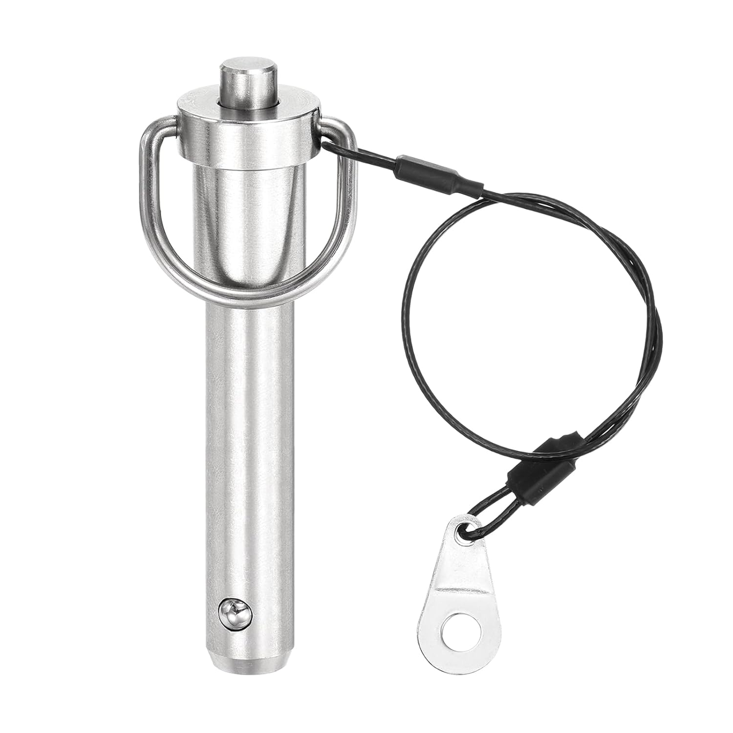 uxcell 1 Pcs Quick Release Pin, 1/2" x 1.77"(Dia. x L) Push-Button Ball Locking Pin 304 Stainless Steel Ring Handle Locking Pin with Wire for Audio Bimini Top Marine, Silver