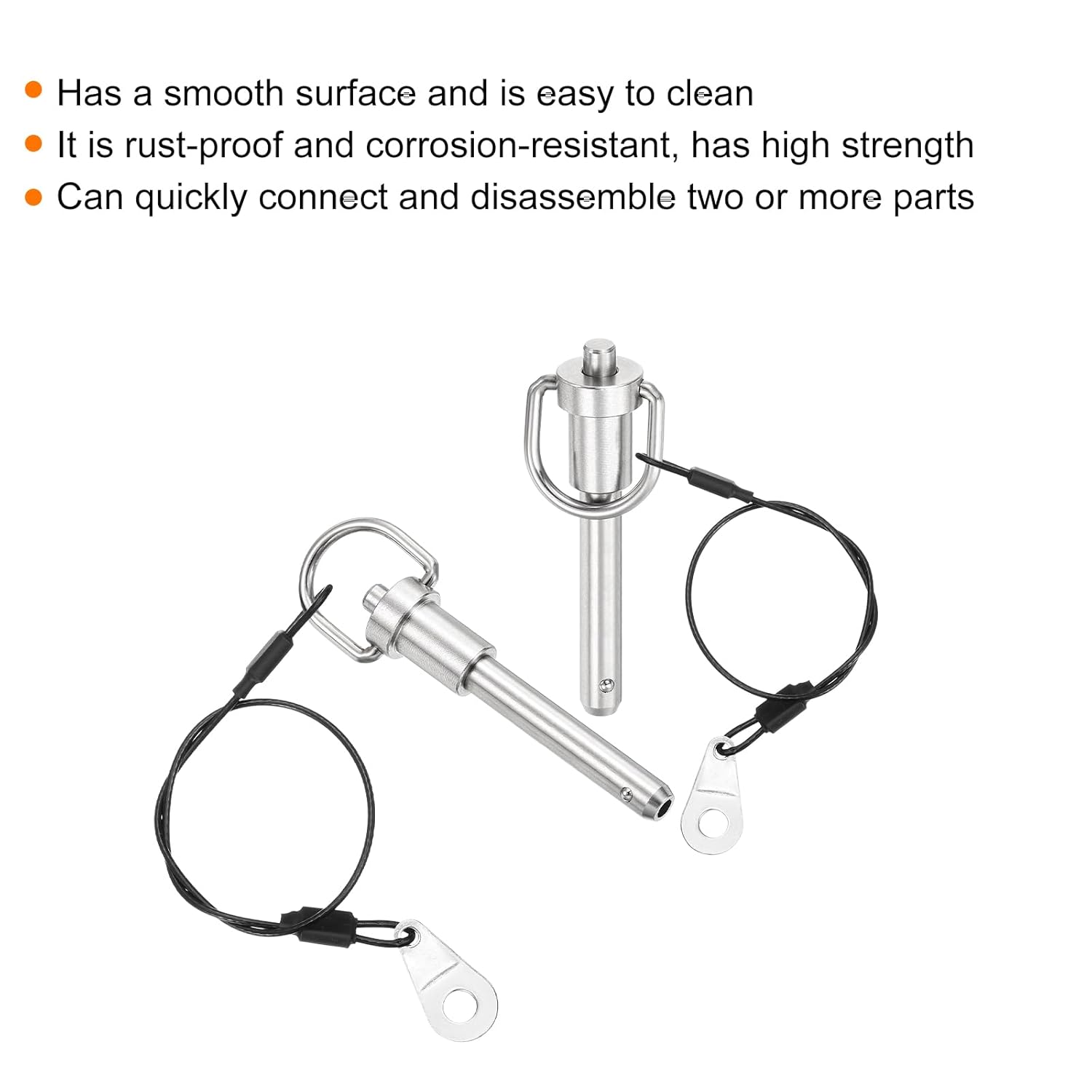 - [Material] Made of 304 stainless steel, the quick release pin has a smooth surface and is easy to clean. It is rust-proof and corrosion-resistant, has high strength, can withstand certain tensile and impact loads, and can be used for a long time.