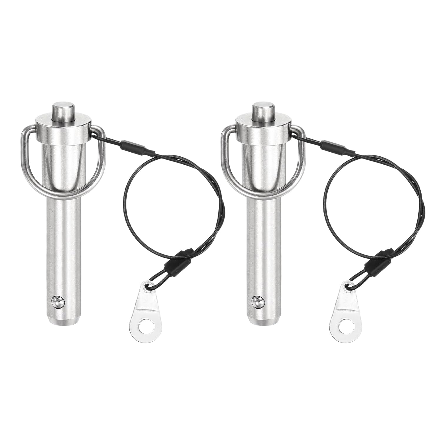 uxcell 2 Pcs Quick Release Pin, 1/2" x 2.52"(Dia. x L) Push-Button Ball Locking Pin 304 Stainless Steel Ring Handle Locking Pin with Wire for Audio Bimini Top Marine, Silver