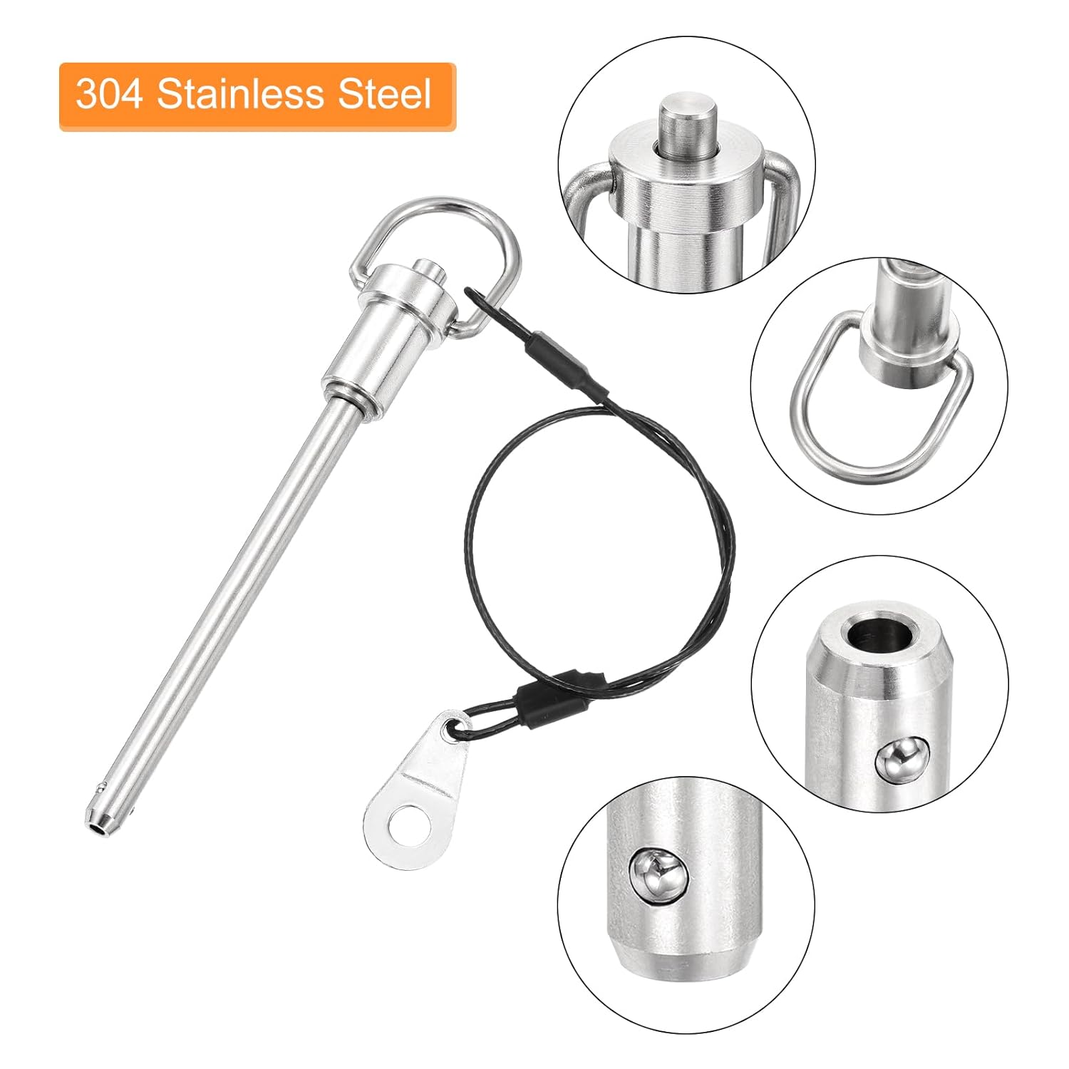 uxcell 1 Pcs Quick Release Pin, 6.3x75mm(Dia. x L) Push-Button Ball Locking Pin 304 Stainless Steel Ring Handle Locking Pin with Wire for Audio Bimini Top Marine, Silver