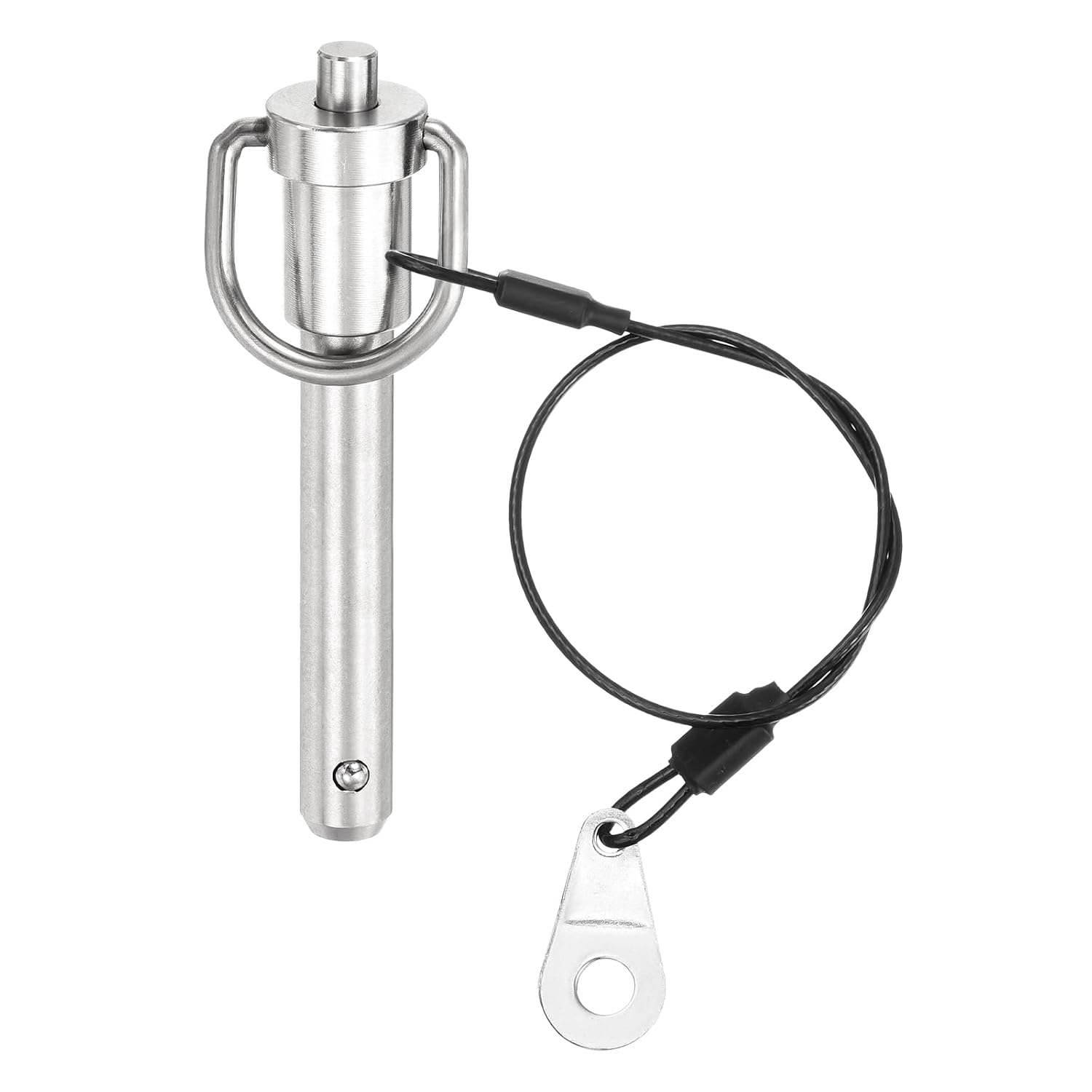 uxcell 1 Pcs Quick Release Pin, 3/8" x 1.77"(Dia. x L) Push-Button Ball Locking Pin 304 Stainless Steel Ring Handle Locking Pin with Wire for Audio Bimini Top Marine, Silver
