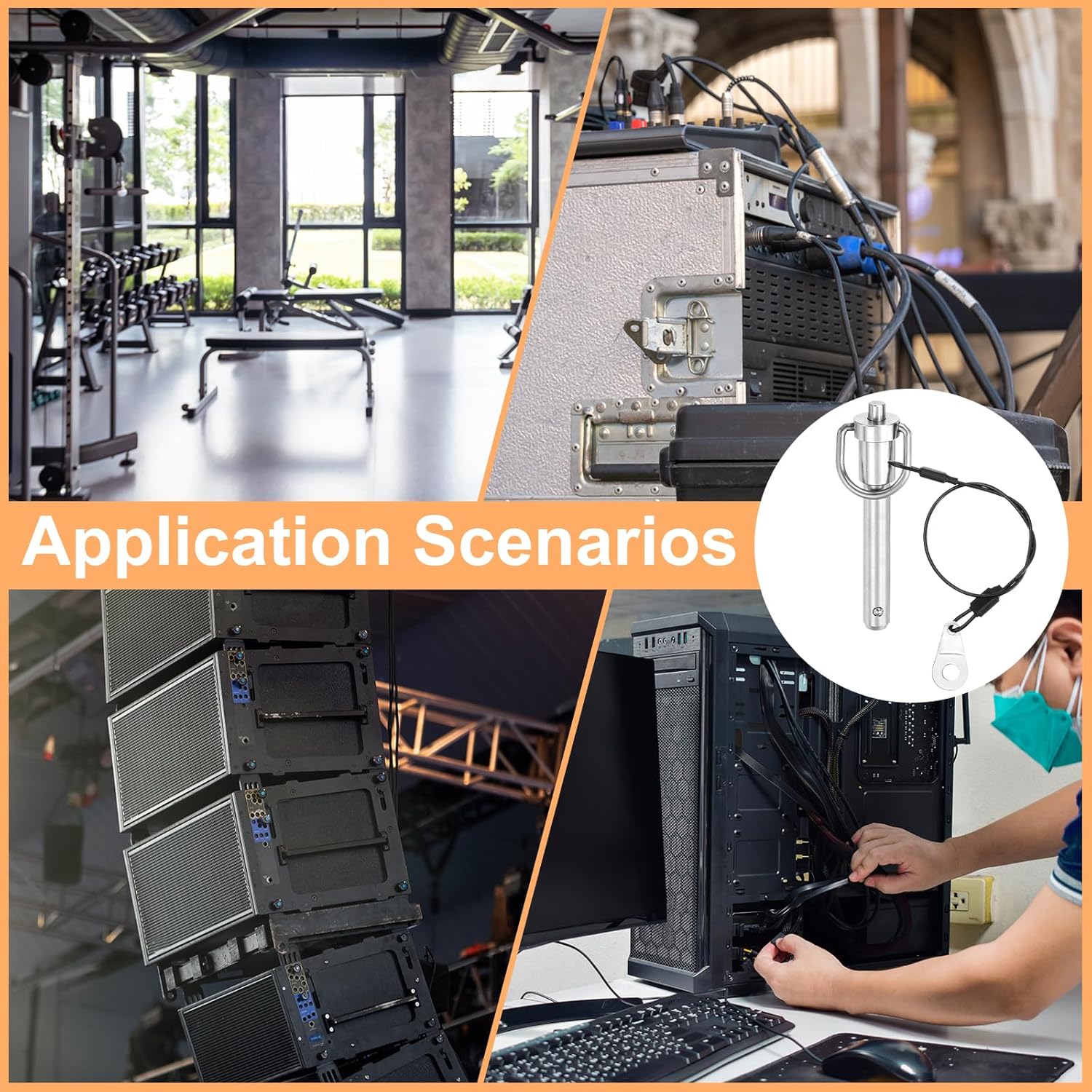 - [Wide Application] Ball locking pins can be widely used in stage audio, aviation manufacturing, gym replacement parts, boat deck hinges, awnings, mechanical engineering, etc.