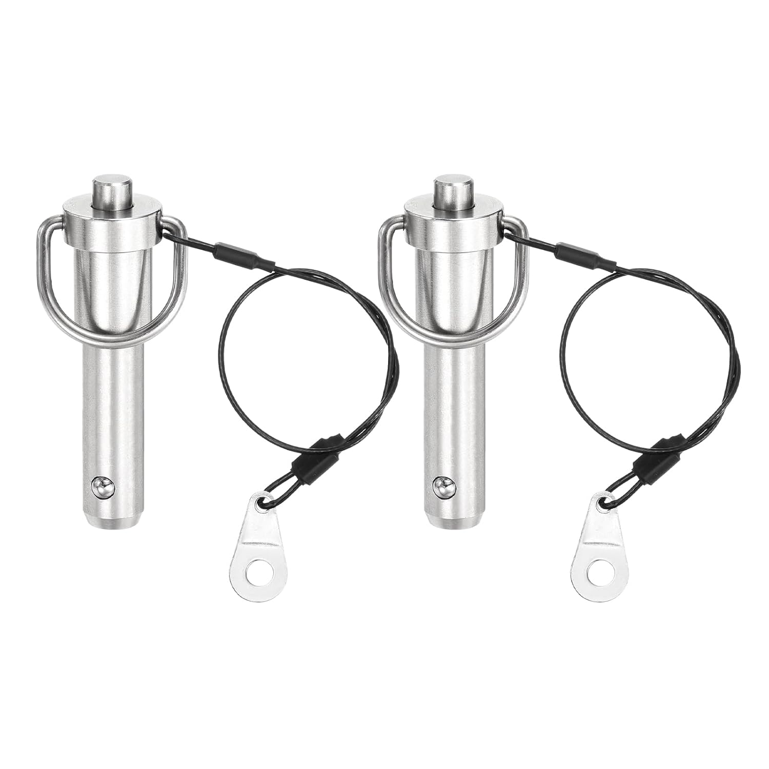 uxcell 2 Pcs Quick Release Pin, 1/2" x 2"(Dia. x L) Push-Button Ball Locking Pin 304 Stainless Steel Ring Handle Locking Pin with Wire for Audio Bimini Top Marine, Silver