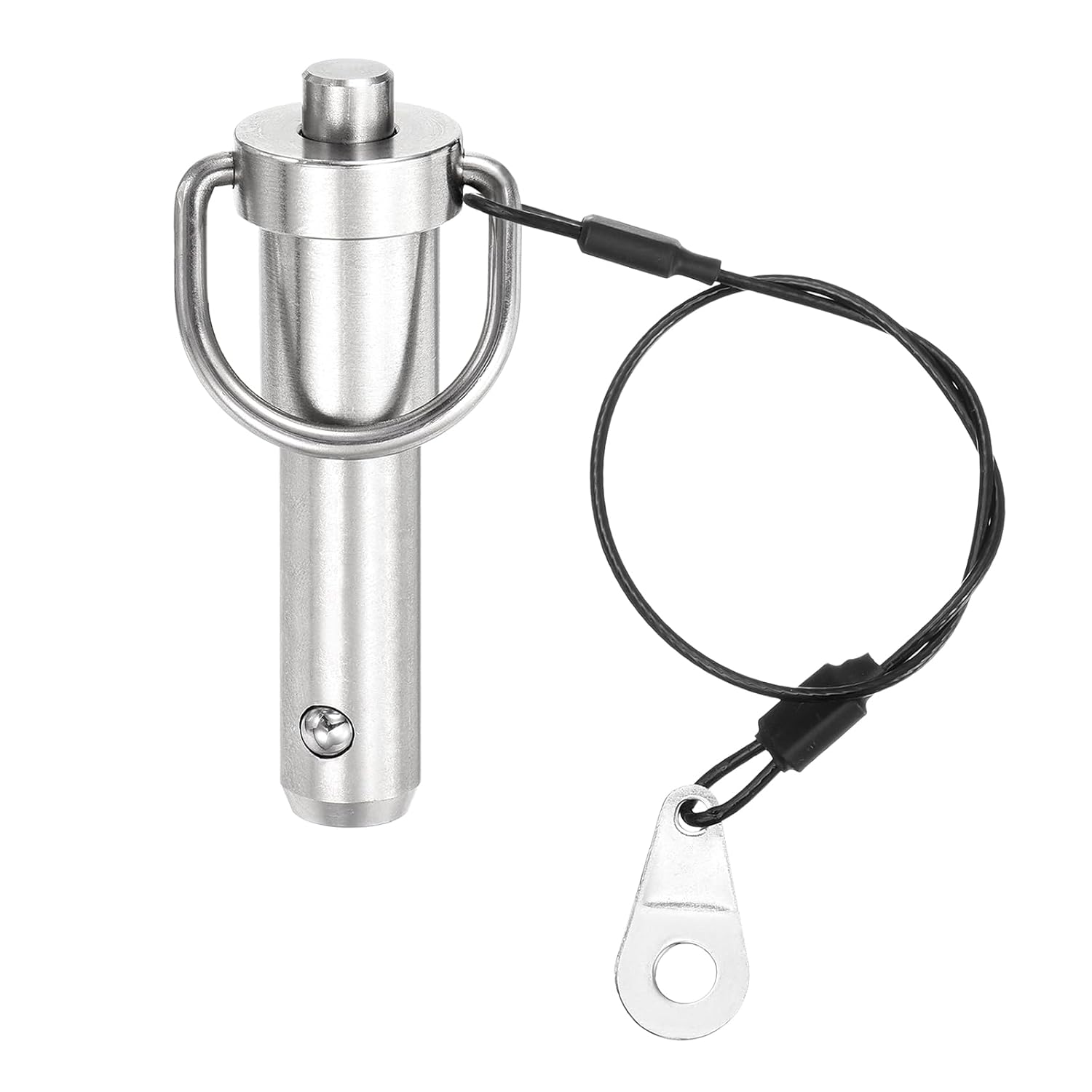 uxcell 1 Pcs Quick Release Pin, 1/2" x 1"(Dia. x L) Push-Button Ball Locking Pin 304 Stainless Steel Ring Handle Locking Pin with Wire for Audio Bimini Top Marine, Silver