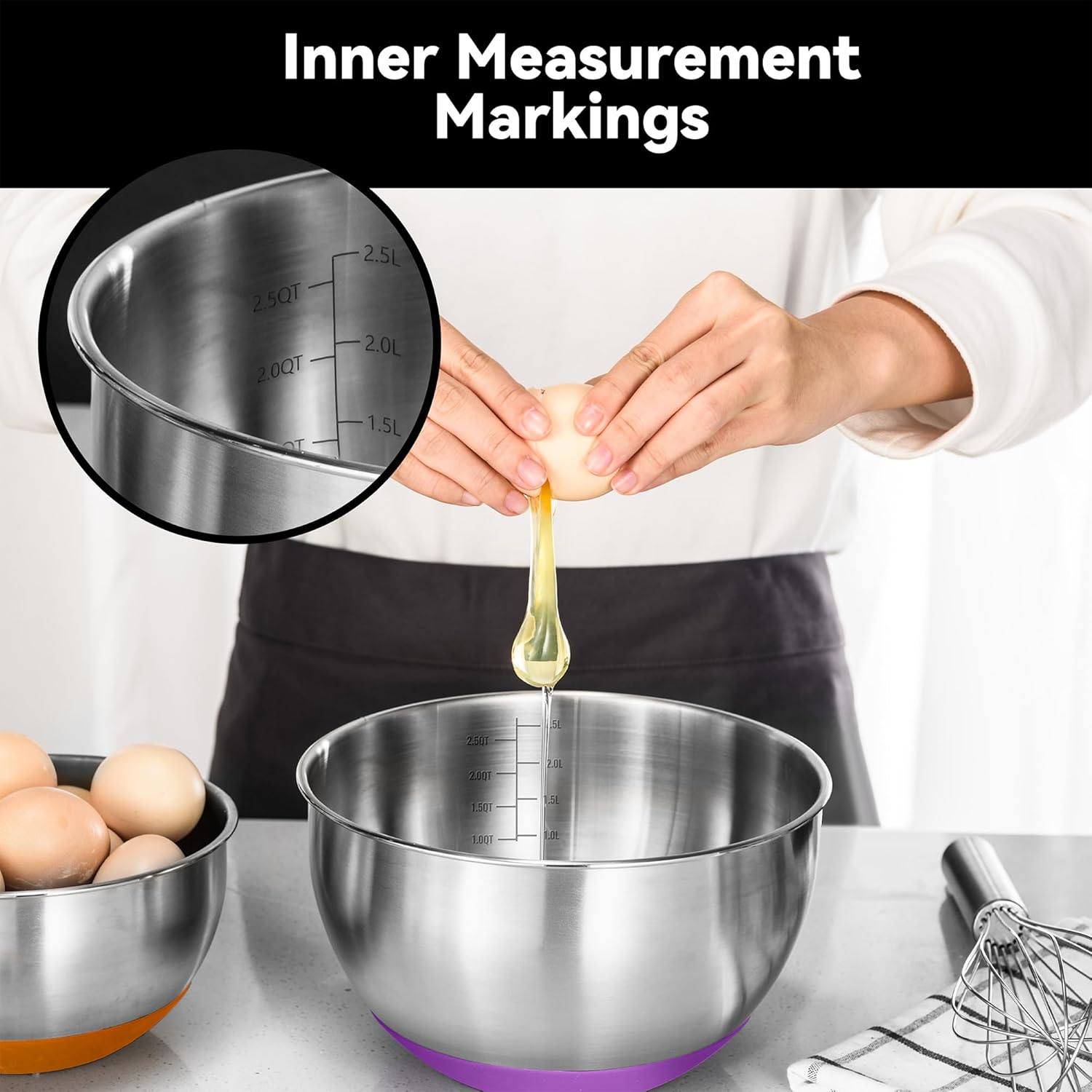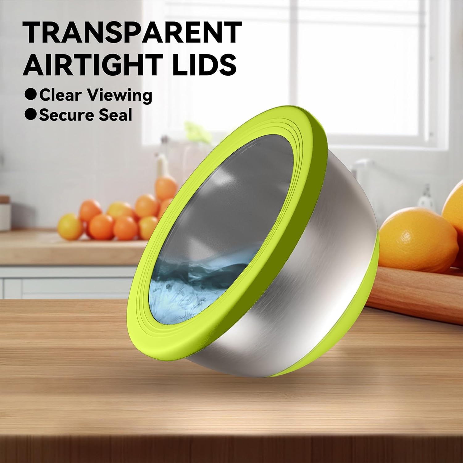 Stainless Steel Mixing Bowls with Lids – Set of 5 Large Nesting Metal Bowls for Kitchen, Baking, Cooking, Food Prep & Storage, Non-Slip Base, Dishwasher Safe, Multicolor