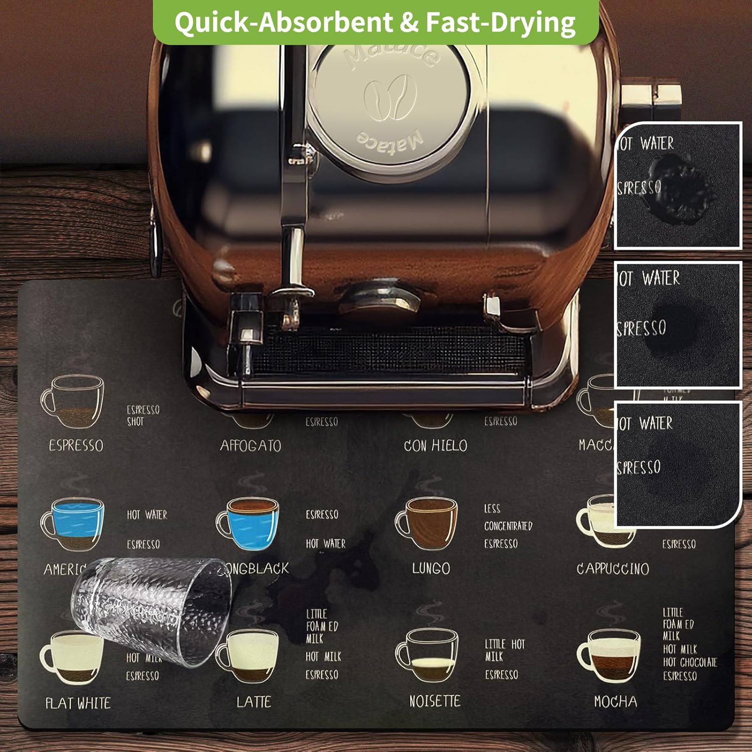 - 【Superior Stain Protection】 Crafted with an absorbent PU leather surface, the Matace Drying Mat quickly soaks up accidental spills and drips, keeping your kitchen counter clean and dry. Ideal for use as a coffee station mat or kitchen drying mat, it effectively protects your surfaces from everyday messes.
