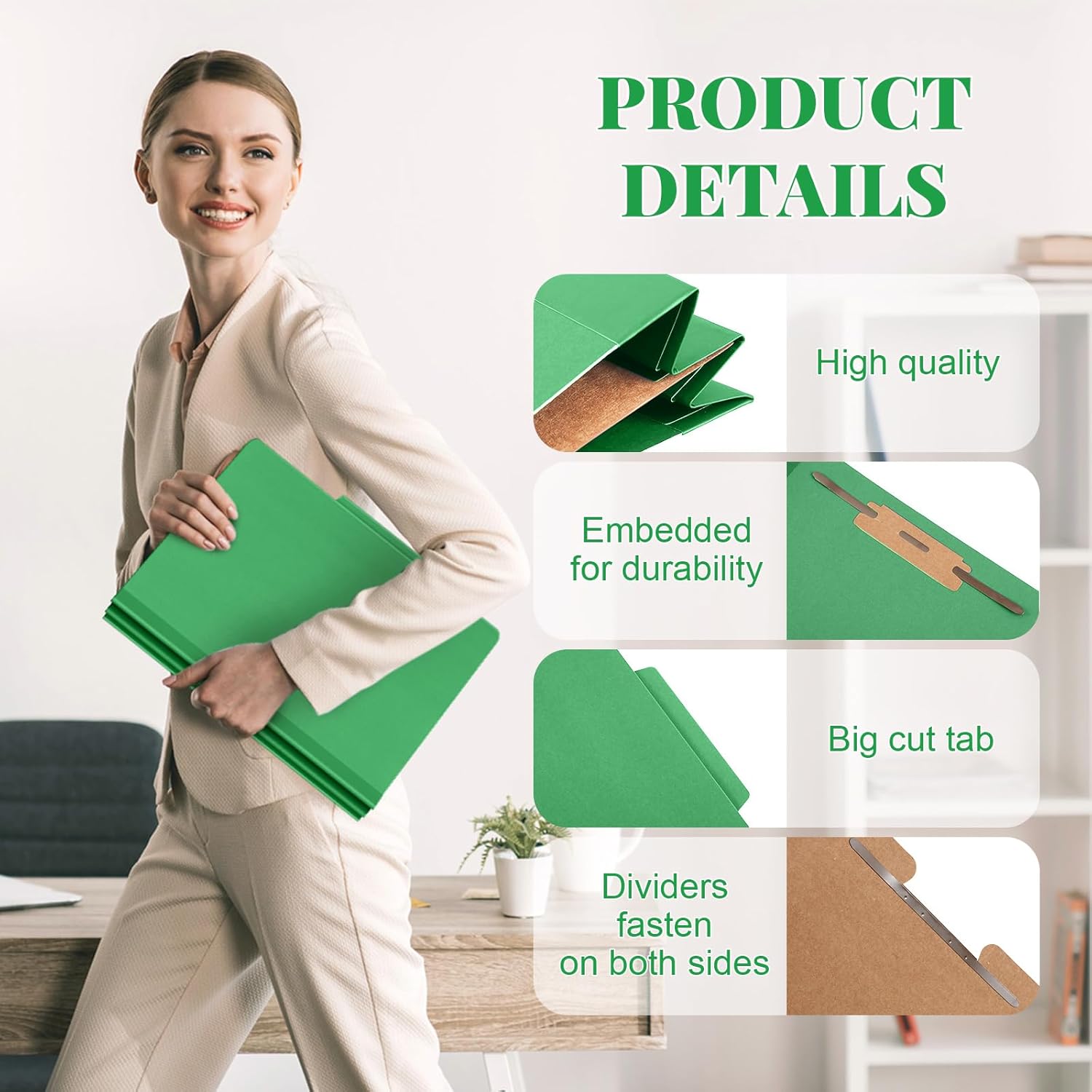 12 Pcs Classification Folders Letter Size, Back to School Supply for Teacher, Student, 1 Divider Pressboard File Folder Bulk with 2 Fasteners, 3.5 Inch Expanding File Organizer (Green)