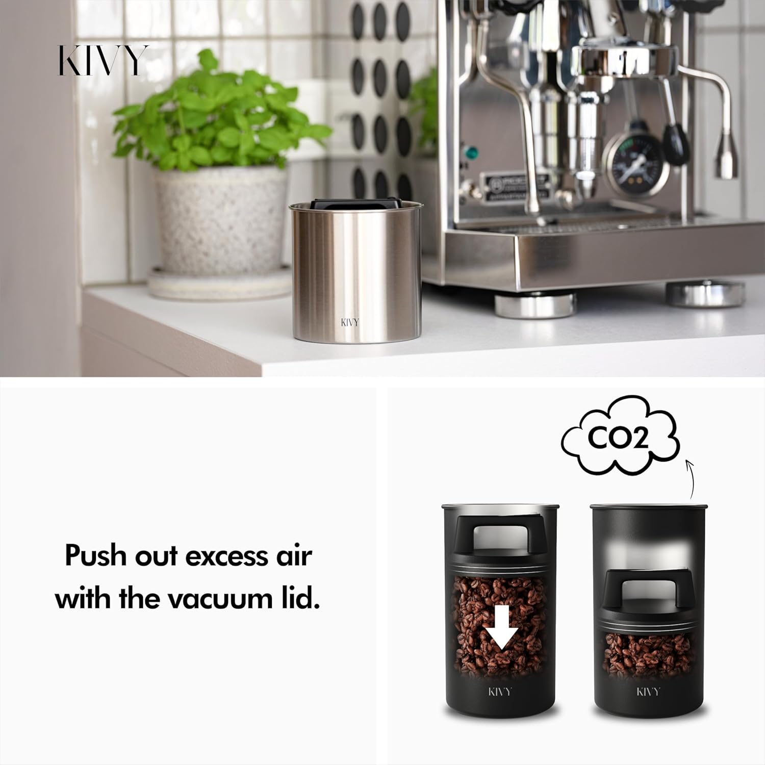 KIVY Vacuum Seal Coffee Canister [AIRTIGHT] - Coffee Canister with Airtight Lid - Airtight Jar - Air Tight Coffee Container - Coffee Storage Vacuum Canister (Stainless Steel)