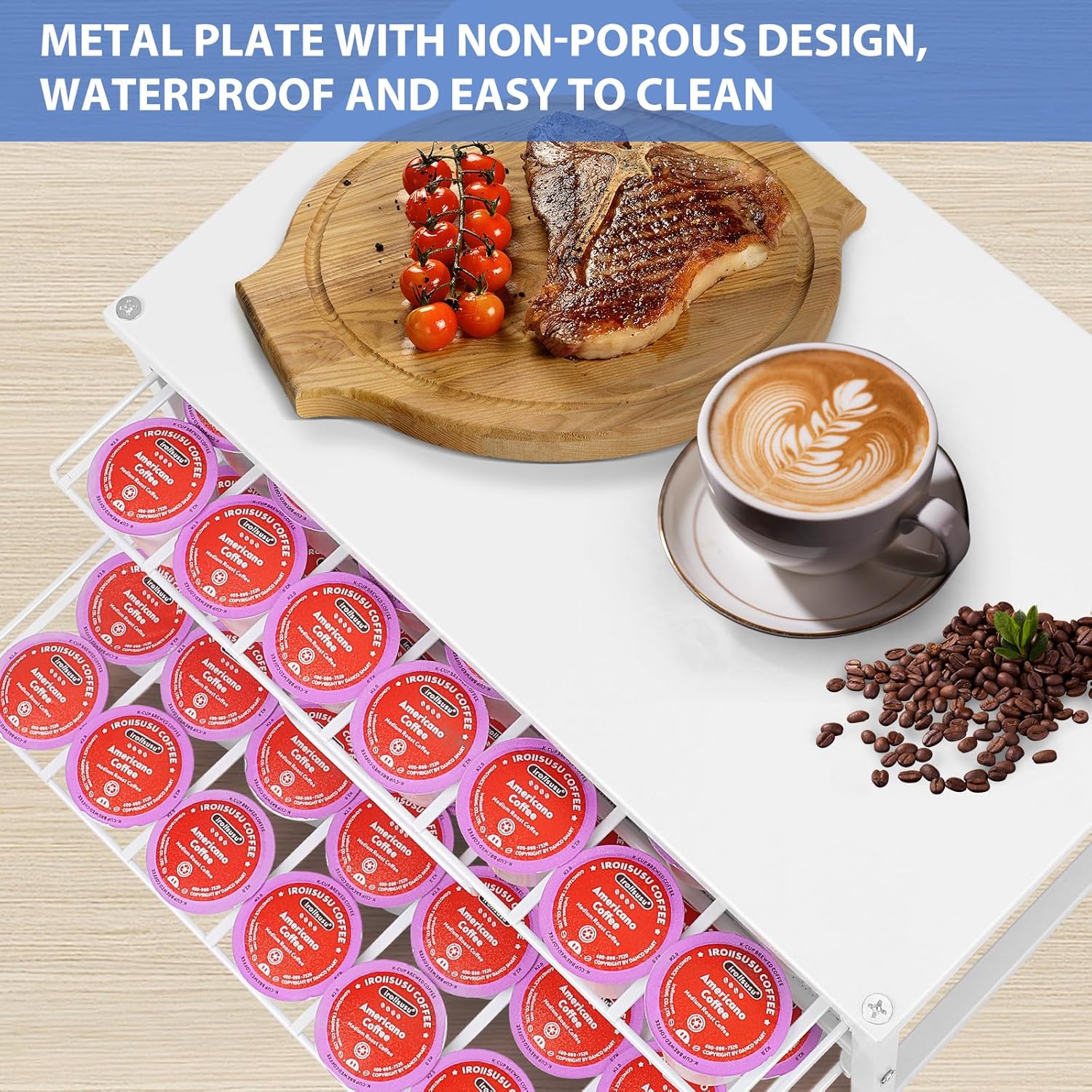 - 【Large Capacity】 The ECOLOVI k cup holder organizer features two spacious storage drawers that can hold up to 70 coffee pods. The pull-out design allows you to easily access and organize your favorite coffee flavors, keeping your coffee area tidy and organized