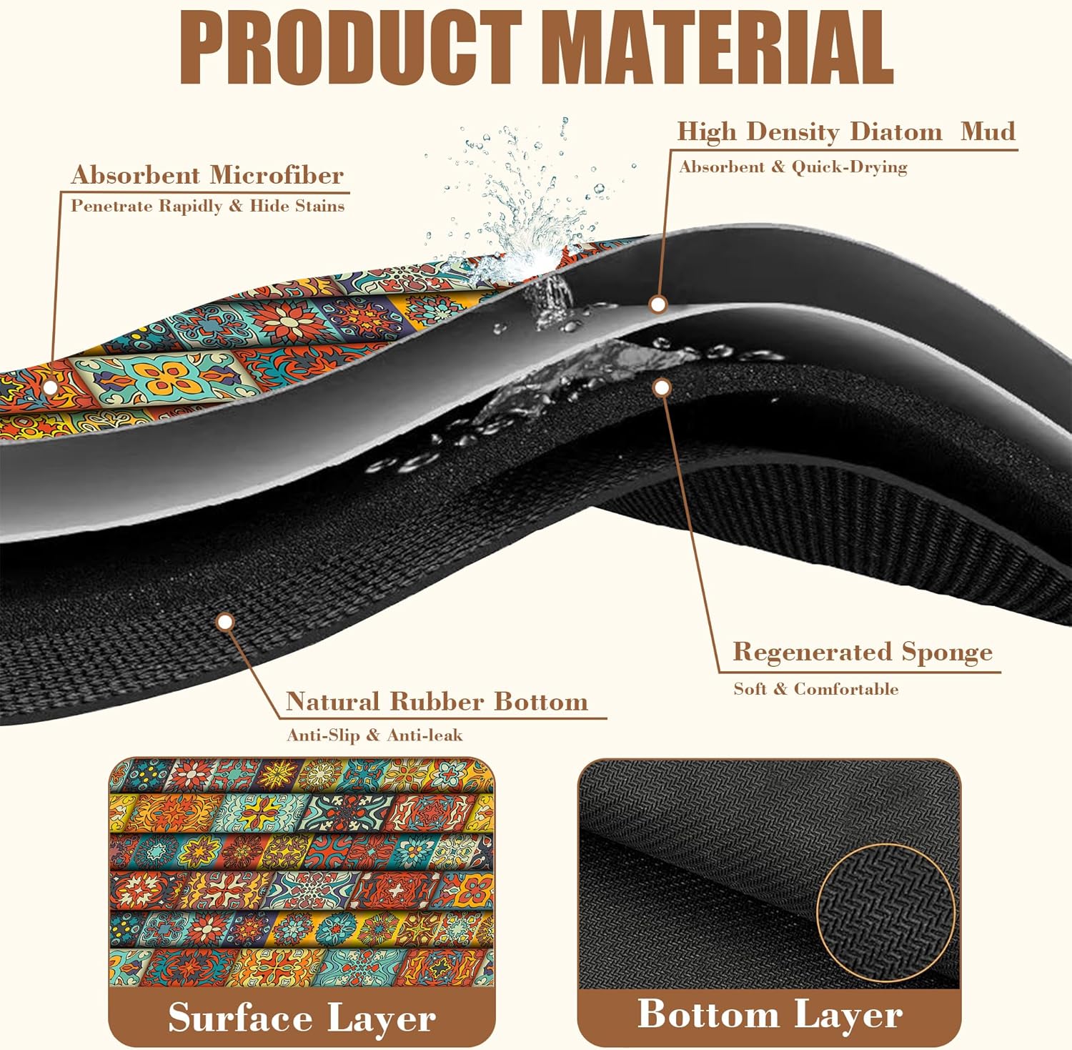 Boho Dish Drying Mat Colorful Mandala Flower Coffee Bar Mat for Countertop Absorbent Rubber Backed Hide Stain Dish Drainer Rack Pad Coffee Maker Espresso Machine Cafe Table Decor 15.7 x 23.6 Inch