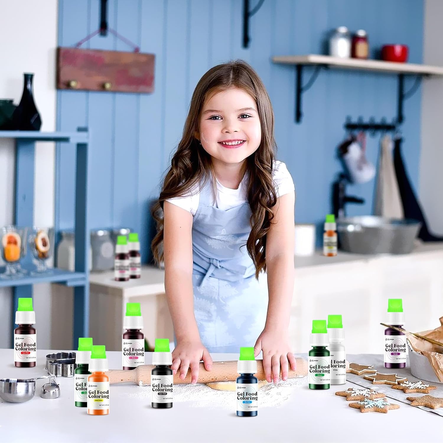 - [ Food Colors for Cake Decorating ] Unleash your creativity with gel food coloring including super red, pink, sky blue, purple, super black, white, green, lemon yellow. Each of the food coloring gel bottle contains 0.35 oz. of color. Whether you're a professional baker or a home enthusiast, you'll have vibrant hues to bring your culinary creations to life.