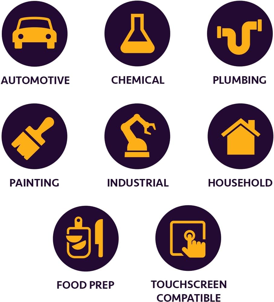 • MULTIPURPOSE & TOUCHSCREEN FRIENDLY: Designed for versatility—perfect disposable gloves for food handling, cleaning, tattooing, automotive work, and more. Textured fingertips ensure a secure grip, while touchscreen compatibility adds modern convenience. Latex-free for reduced risk of allergic reactions.