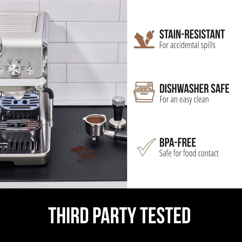 - THICK, 100% WATERPROOF SILICONE: help protect your countertops from accidental spills and stains with Gorilla Grip’s thick silicone and waterproof coffee mat; featuring 1/8th inch raised edge to help contain liquids and prevent accidental stains and mess