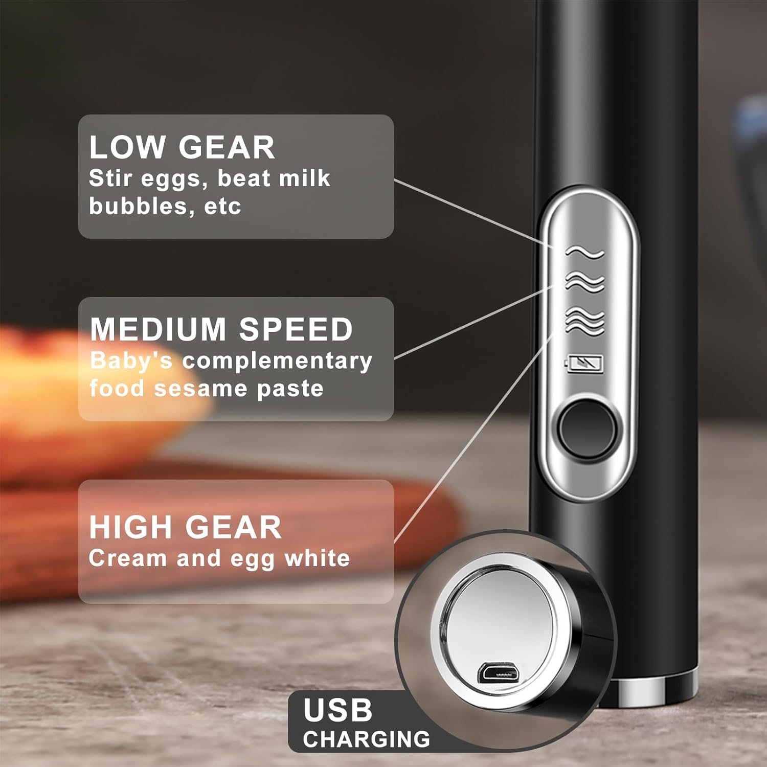 SOUTHMAN Milk Frother Foamer with Stainless Steel Stand, Rechargeable Electric Milk Frother Handheld Whisk, Drink Mixer for Latte, Cappuccino