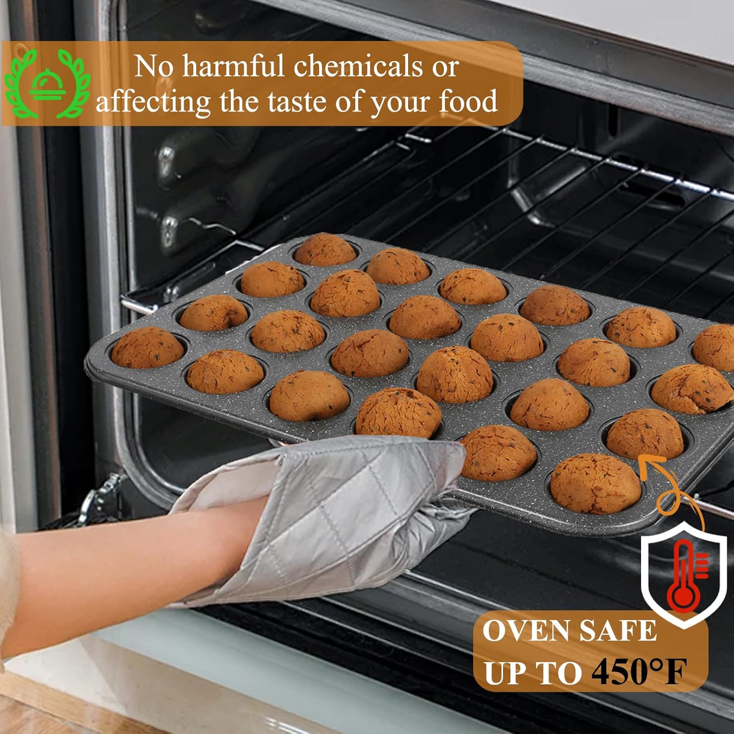 Muffin Cupcake Pan, Mini Muffin Tins Nonstick 24, Muffin Top Pan and Mini Cheesecake pans, Toast Oven Baking Supplies Non Stick Cake Pans Muffin Tray