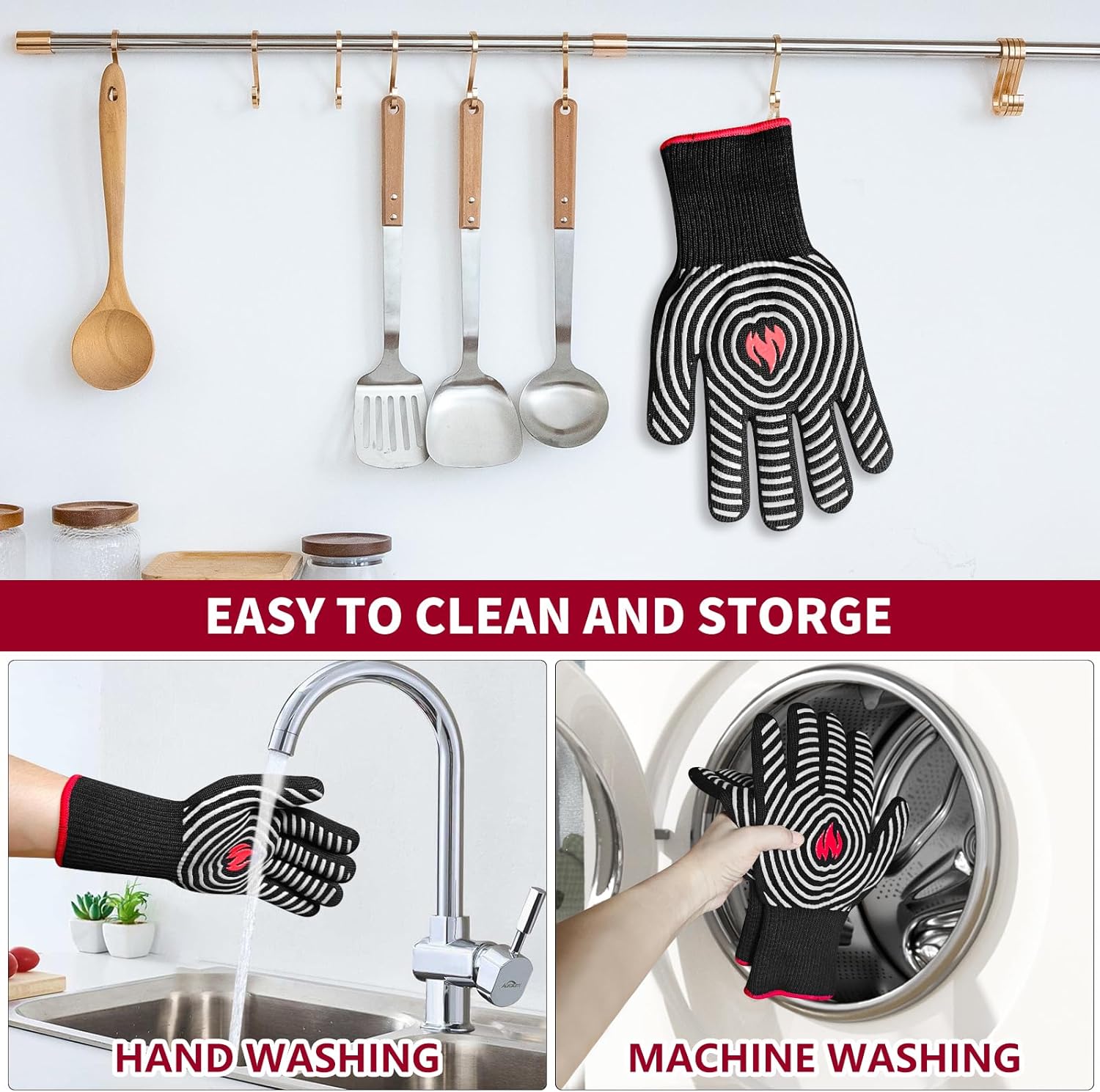 - Notice: These heat resistant gloves are flame-retardant but not permanently fireproof or heat-insulating. Avoid using them directly on open flames and avoid prolonged exposure to high temperatures to prevent burns
