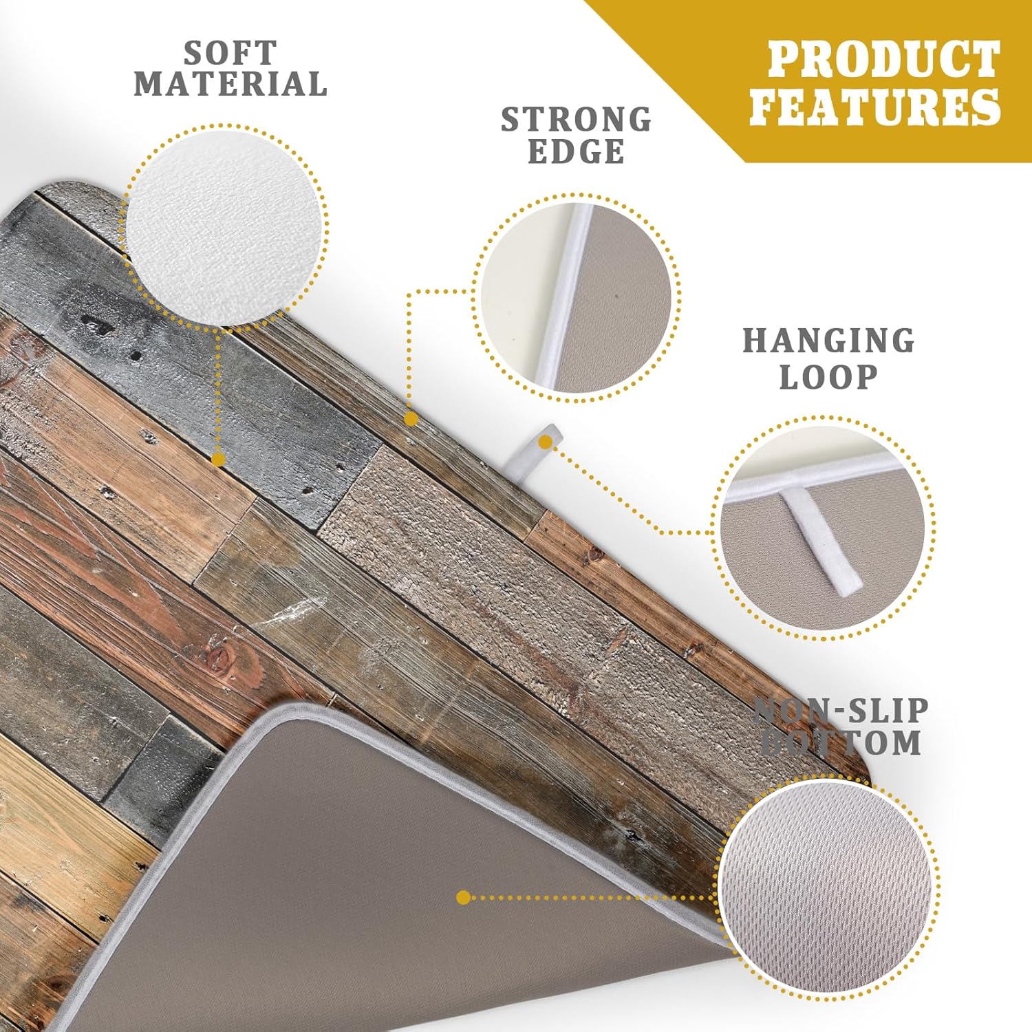 Giwawa Wood Grain Dish Drying Mat for Kitchen Countertop, Rustic Wooden Board Dish Drainer Mats, Vintage Country Style Barnwood Absorbent Reversible Microfiber Dish Drying Pad, 18x24 inch Large