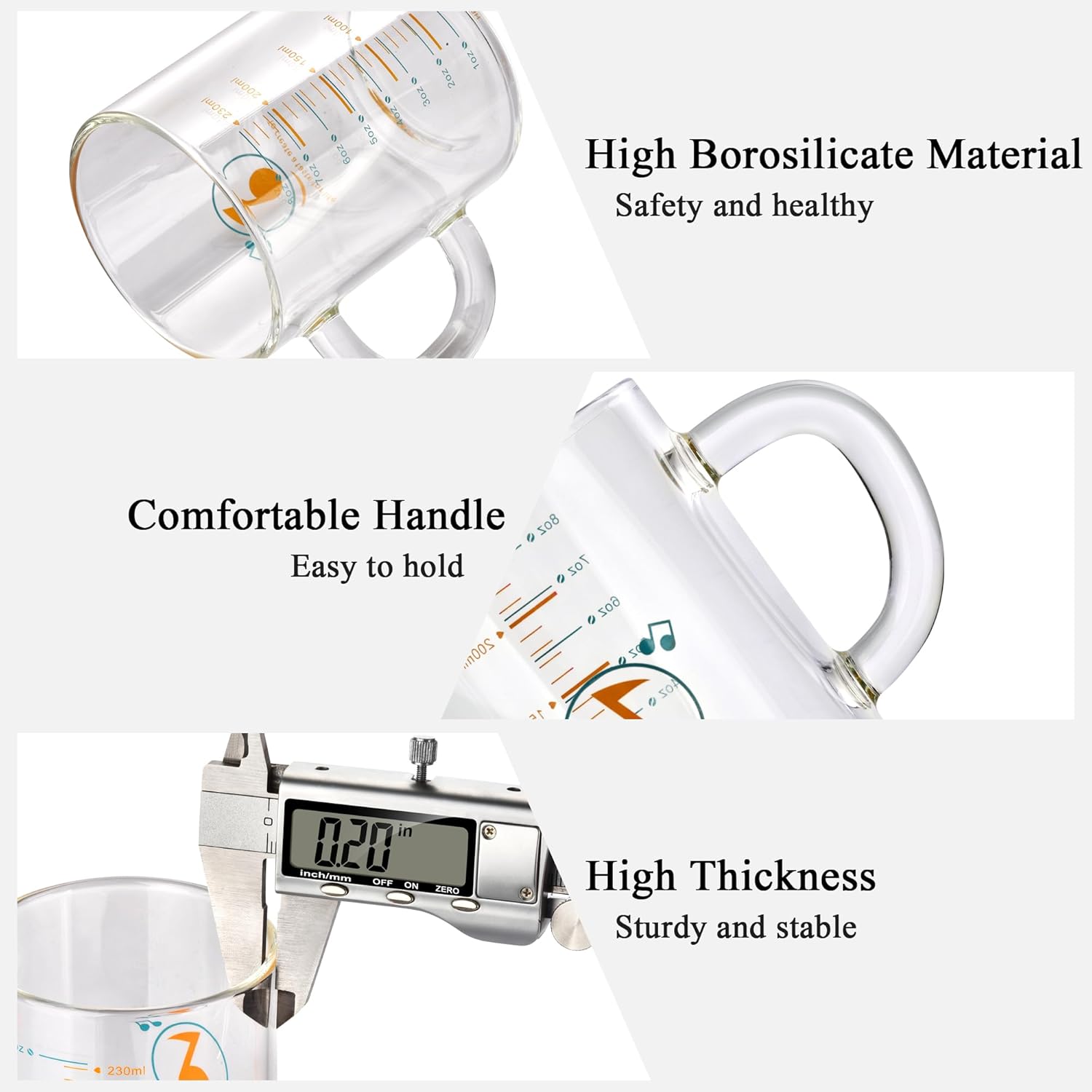 8 Oz Glass Measuring Cup Espresso shot glasses Clear Coffee Mugs for Hot or Cold Glass Expresso Small Coffee Cup with Glass Handle High Borosilicate Glass Cup (Colorful)