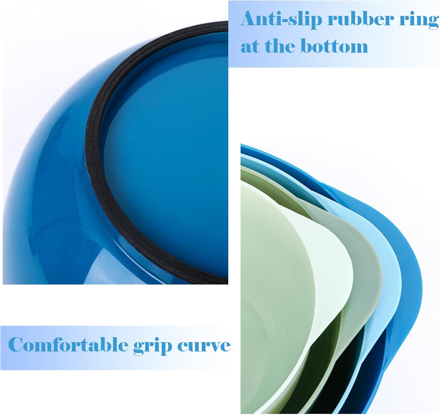- 【Non-Toxic & Food Safe Material】Our mixing bowl is made of food-grade material, BPA-free and odorless, ensuring the absolute food safety in prepping, washing, baking, mixing and serving. Safe for use in microwave, Note: Please do not overheat as it may shorten the product life. (Temperature Resistance: -20℃~90℃/-4℉~194℉)