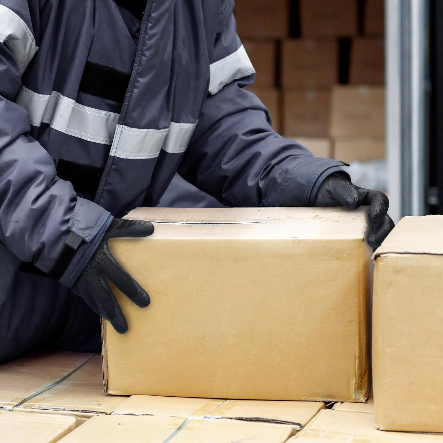 KAYGO Winter Work Gloves for Men and Women, 12 Pairs Thermal Insulated Safety Work Gloves PU Coated, Smooth Grip on Palm & Fingers,Ideal for Freezer Work,Black,M