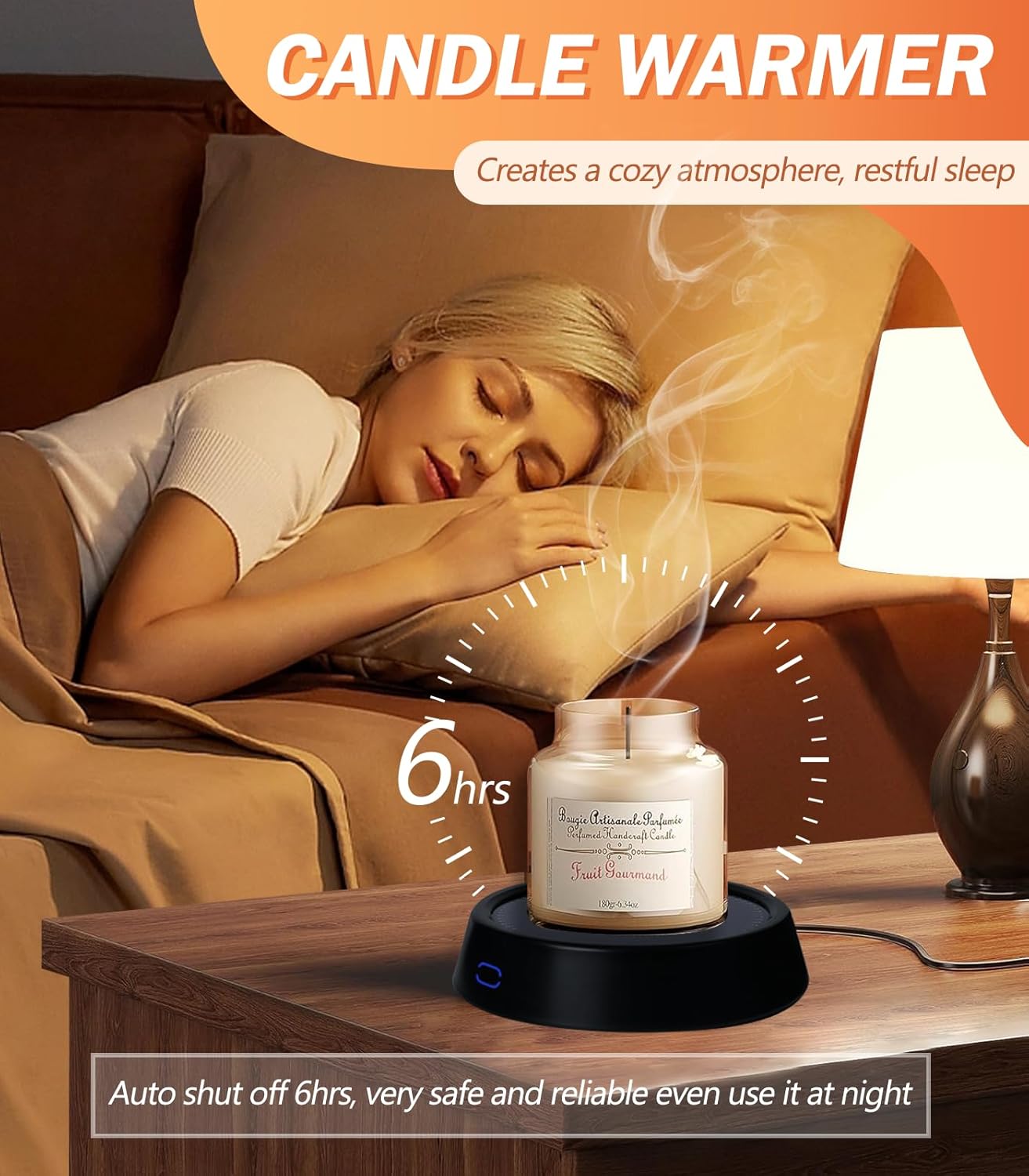 - 【Compact Design】(4.8*4.8*0.98IN/0.48LB) is easy to carry. Whether in the office or at home, you can drink hot coffee at any time. The 3.7IN heating plate is suitable for most glass, stainless steel cups, bottles and mugs. You can also use this cup warmer as a candle warmer to heat candles without flame and fill your room with fragrance.
