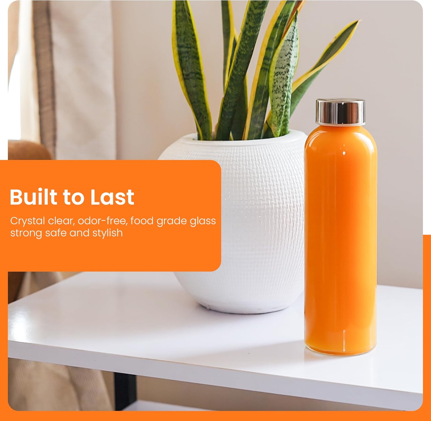 Epica 18-Oz Glass Water Bottles with Lids, Juice Bottles - BPA Free & Eco-Friendly Reusable Refillable Bottles for Juicing, Set of 4 - Clear