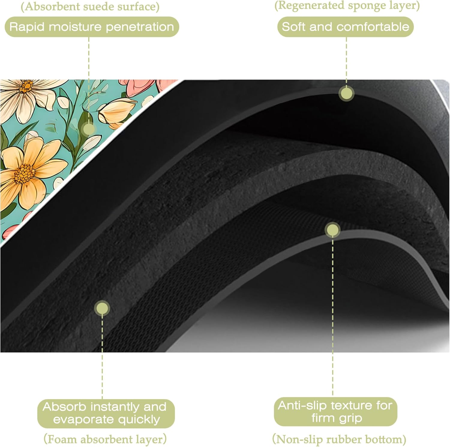 Dish Drying Mat Spring Flower Kitchen Mat 16"x24" Bsorbent Coffee Maker Mat for Dishes,Utensils Coffee Maker Pots and Pans Easy Clean Dish Slip Resistant Pad