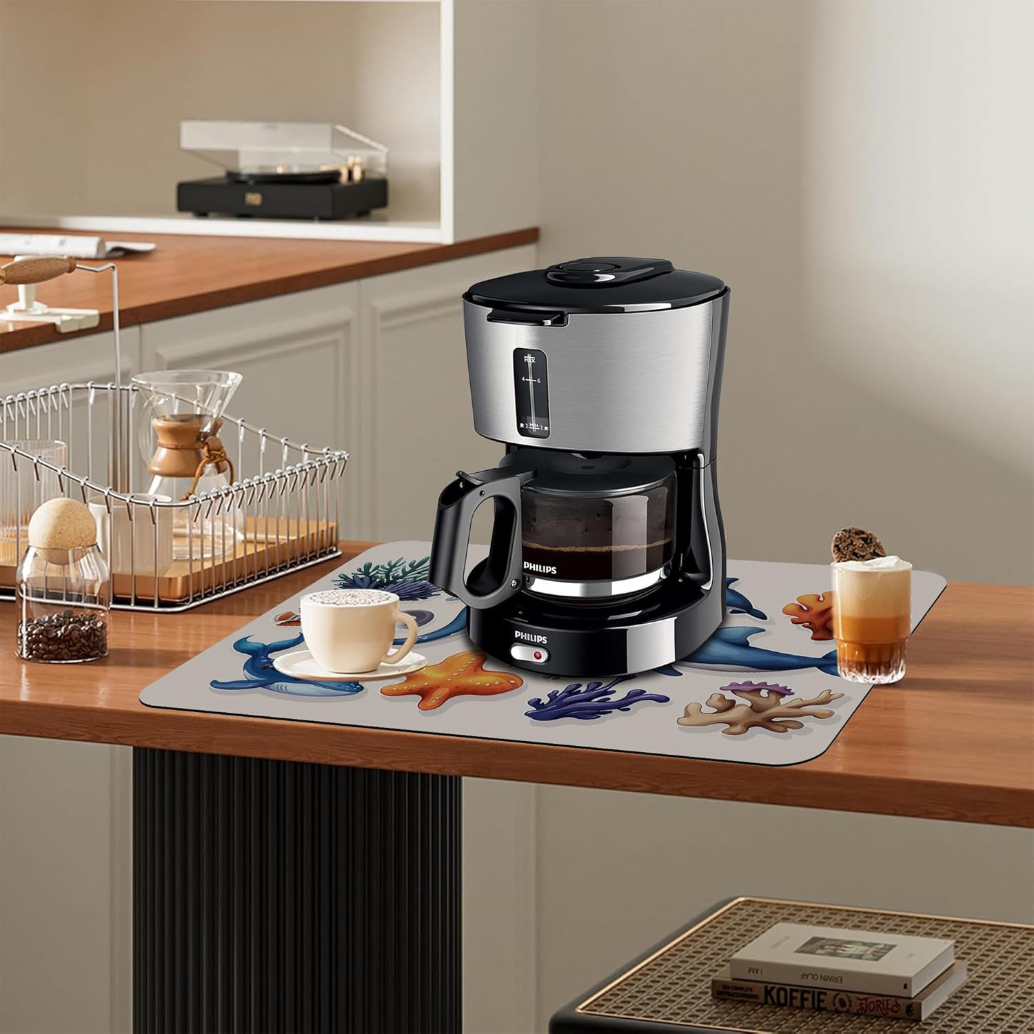 Sea Animals Dish Drying Mat Dolphins Starfish Anemones Kitchen Mat 16"x24" Bsorbent Coffee Maker Mat for Dishes,Utensils Coffee Maker Pots and Pans Easy Clean Dish Slip Resistant Pad