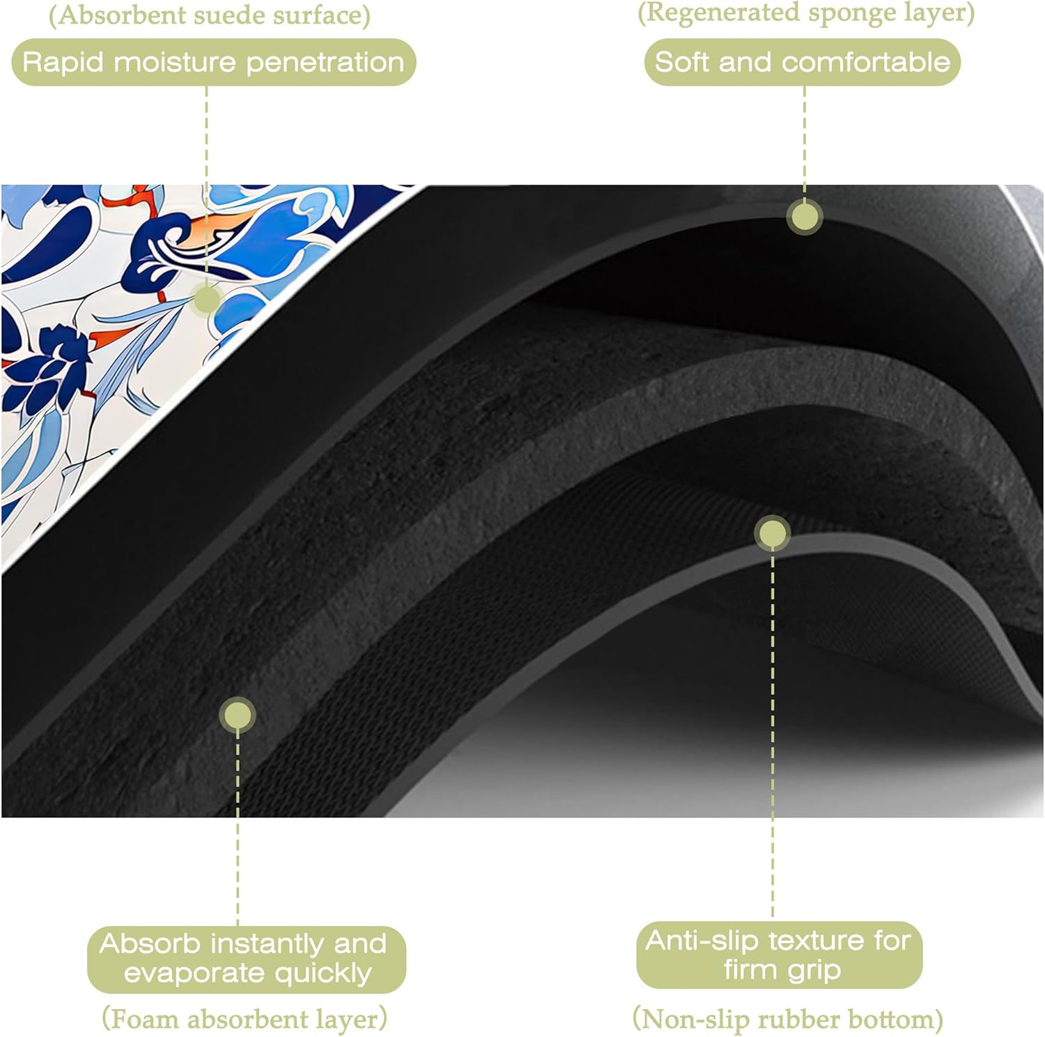 - Super absorbent and non-slip:This kitchen mat absorbent layer is made of absorbent suede and diatom mud,the surface porosity of the product is as high as 85%,which can quickly absorb water and stains,the texture design on the back is more non-slip