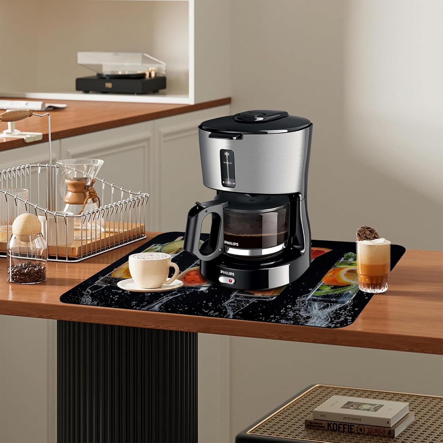 Dish Drying Mat Glasses Filled with Various Fruits Kitchen Mat 12"x19" Bsorbent Coffee Maker Mat for Dishes,Utensils Coffee Maker Pots and Pans Easy Clean Dish Slip Resistant Pad