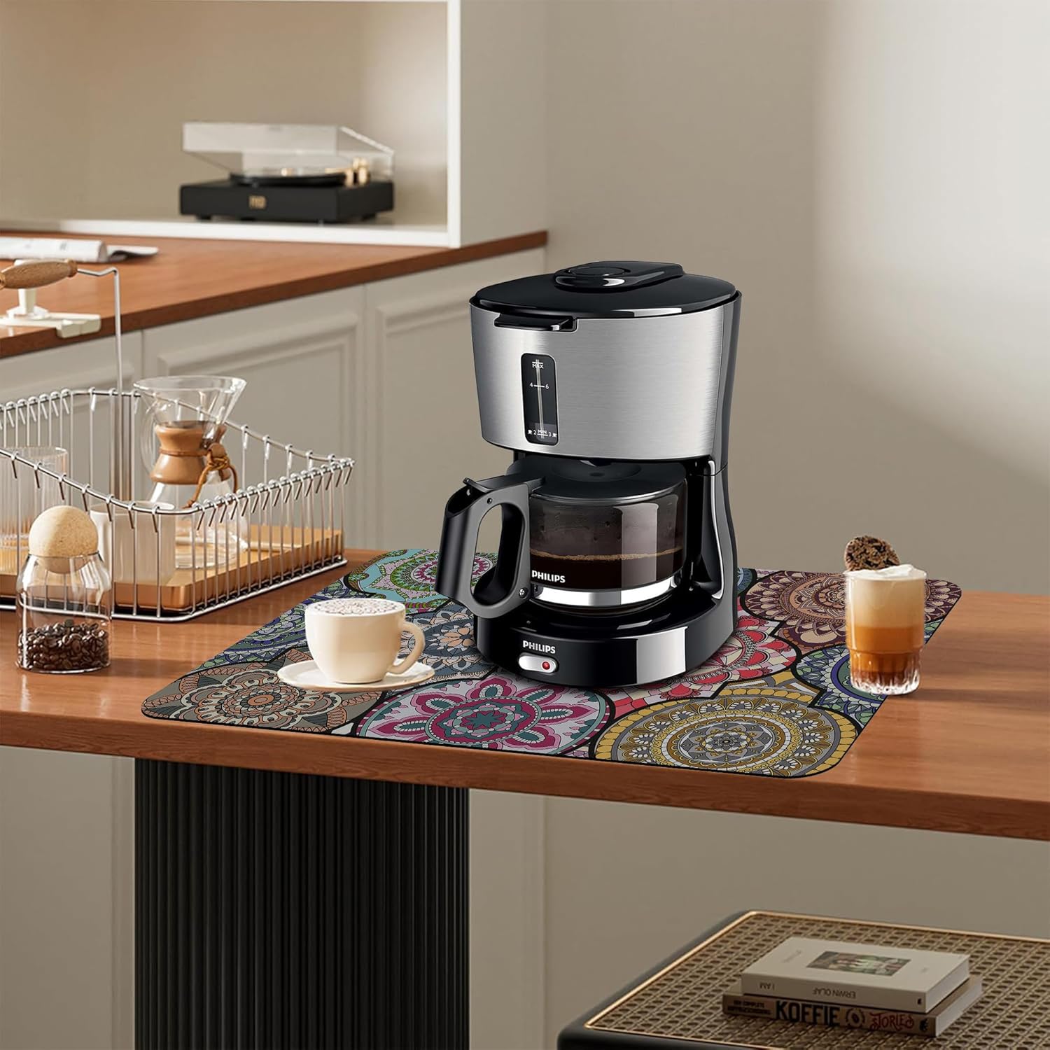 Dish Drying Mat Bohemia Vintage Decorative Pattern Kitchen Mat 16"x24" Bsorbent Coffee Maker Mat for Dishes,Utensils Coffee Maker Pots and Pans Easy Clean Dish Slip Resistant Pad