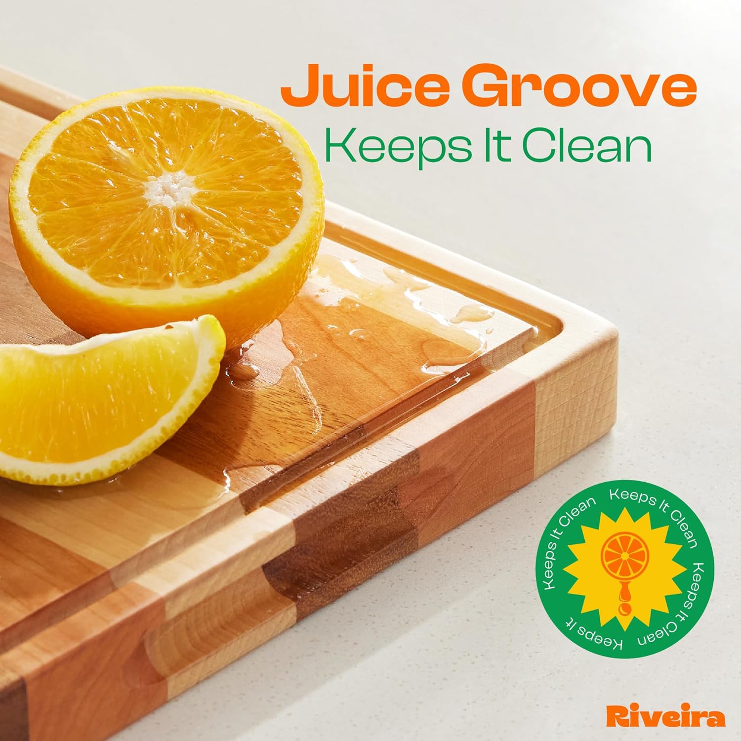 - Handle Everything with Confidence — The built-in handle holds of the Walnut/Cherry/Maple cutting boards are designed for handling everything with confidence and easy maneuvering. Pre-oiled and ready for immediate bewilderment, wooden chopping board is not just convenient for the kitchen mess but has a unique design to maintain, ensuring a performance that is both comfortable and clean for chopping boards for kitchen. Riviera non toxic cutting boards for kitchen will be perfect in your kitchen.