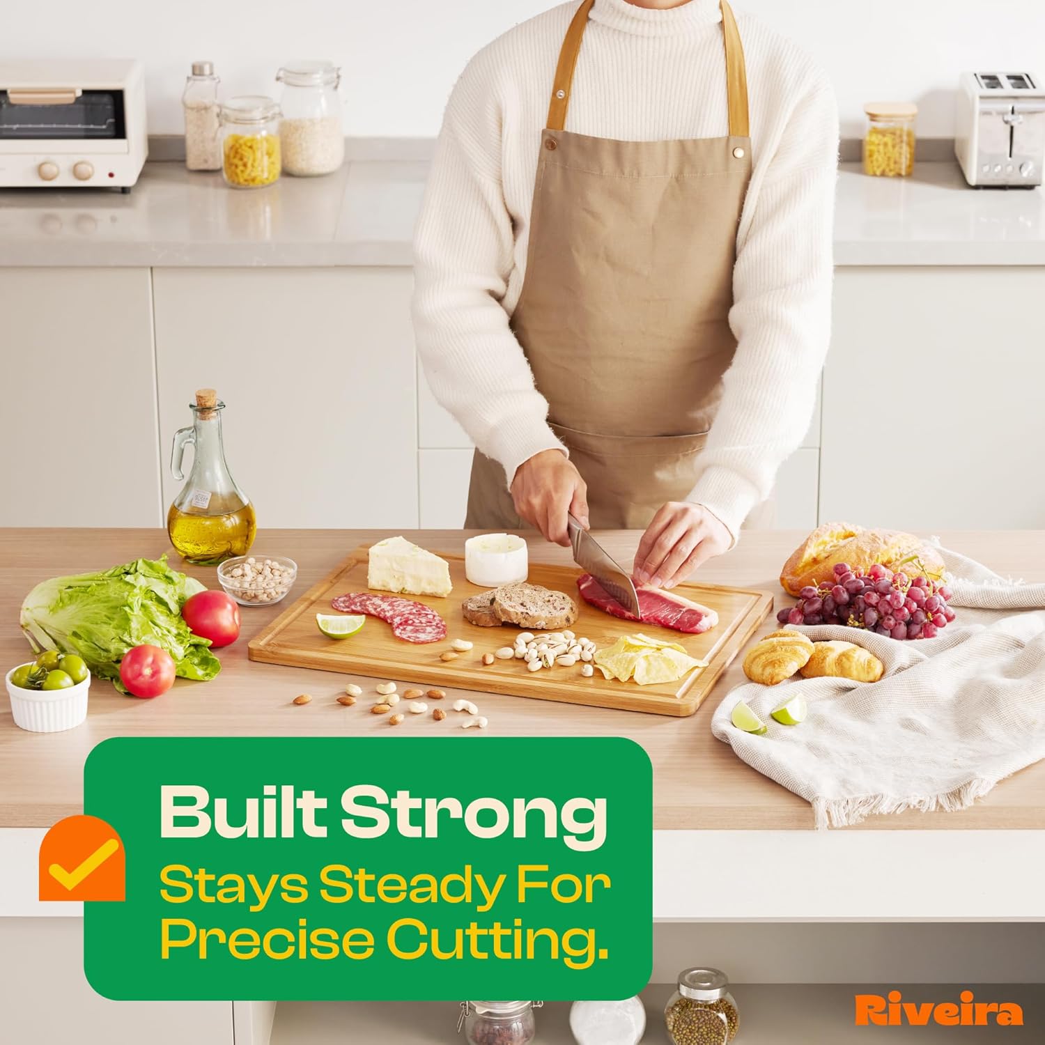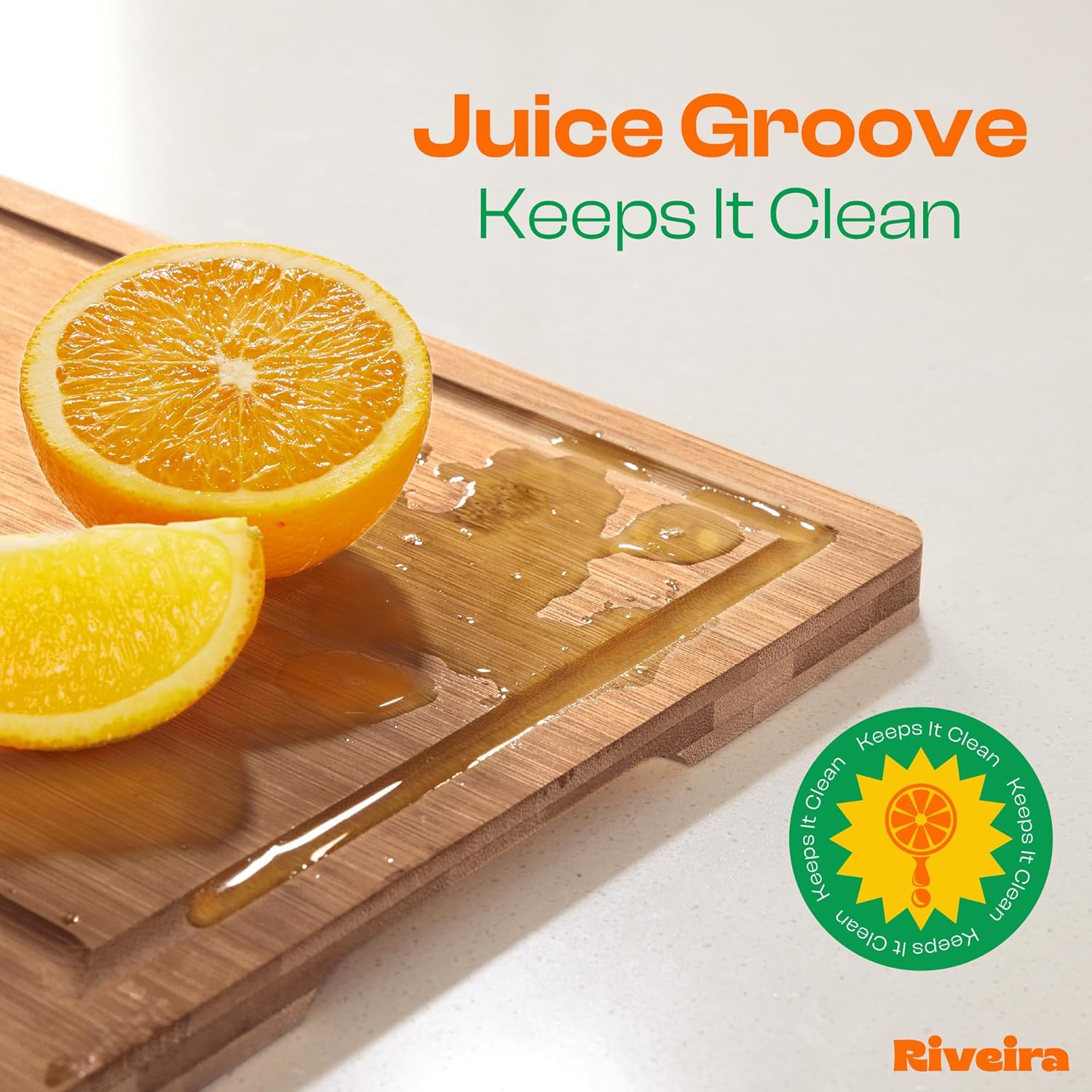Riveira Brown Bamboo Wood Cutting Board – Gourmet Bamboo Grandeur: 20 x 14 Wooden Cutting Board – Wooden Cutting Boards For Kitchen Decorative – Innovative Juice Grooves Wooden Chopping Board