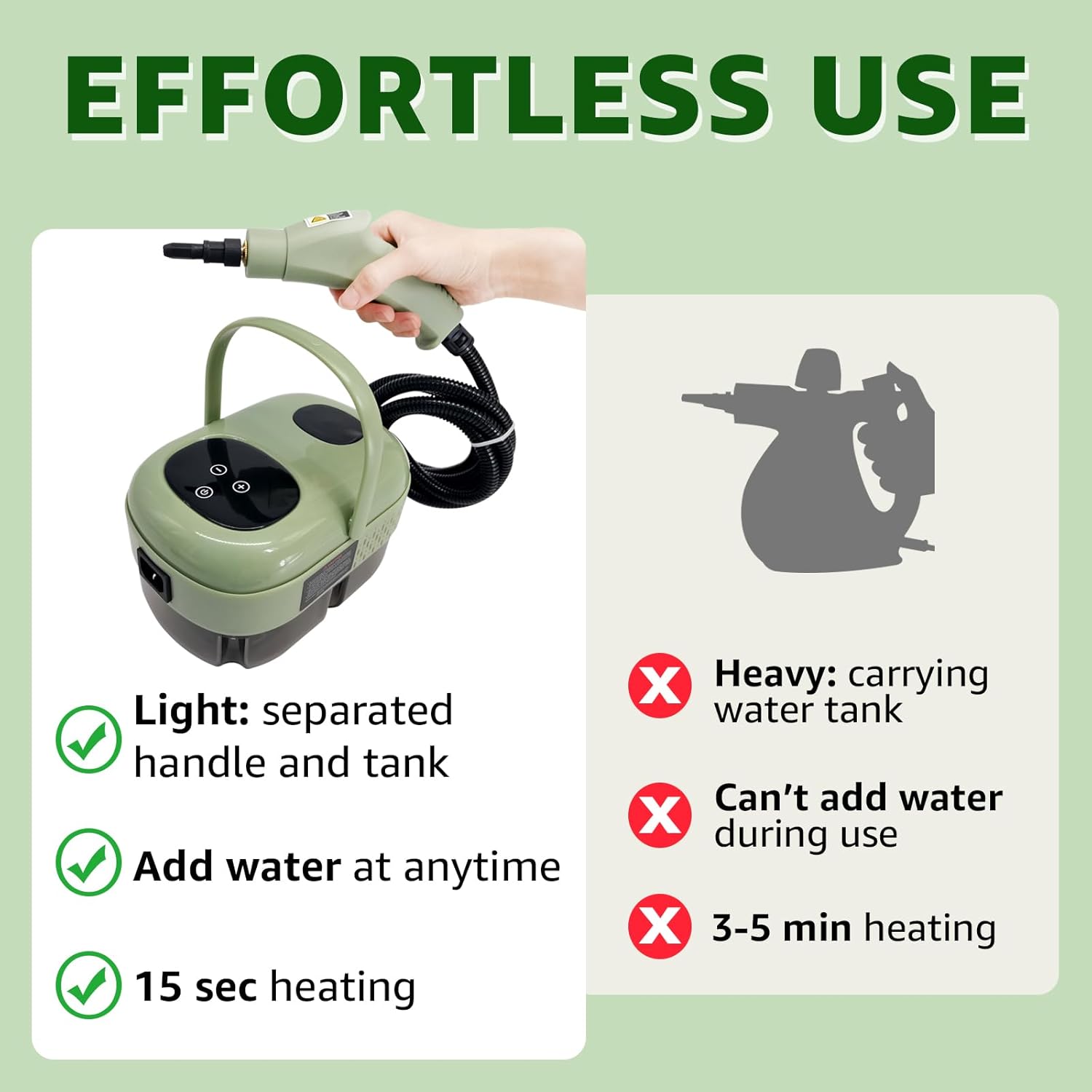 - POWERFUL STEAM CLEANER: This handheld steam cleaner has 2500W power (Working voltage: 110V), can generate up to 221℉ (105℃) high temperature steam in just 15 seconds, and release 3Bar high pressure, effectively cleaning stubborn greasy dirt and stains, allowing you to easily complete cleaning tasks. The steam cleaner for home keeps your family and pets healthy.