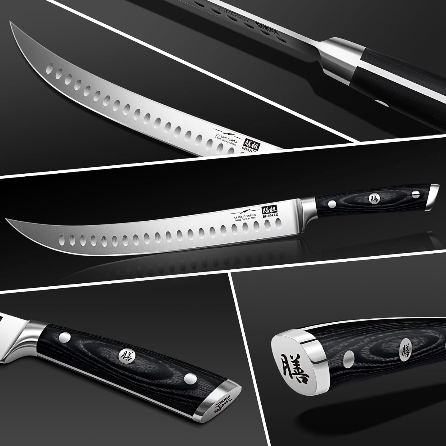 SHAN ZU 12" Slicing Knife - Brisket Slicing Meat Carving Knife Professional German 1.4116 Stainless Steel Razor Sharp Blade, Ergonomic Wood Handle & Full Tang Design, Gift Box Included