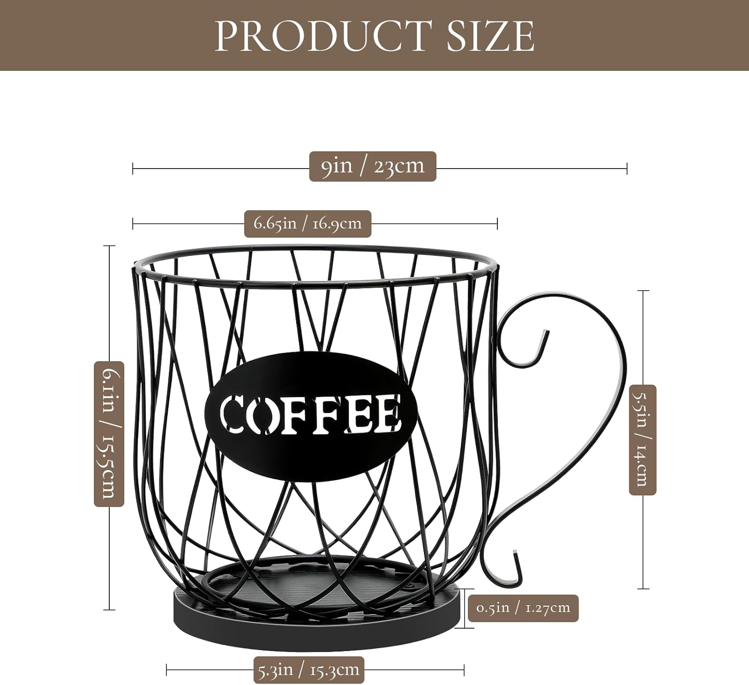 - MULTIPURPOSE BASKET: This round k cup storage has a spacious 9" X 6.1" X 6.1" size, capable of storing enough K cups to last an entire week. Not just for coffee pods, this versatile organizer can also hold tea bags, sugar packets, and other small items, making it a convenient storage solution for your kitchen, office, or even your desktop