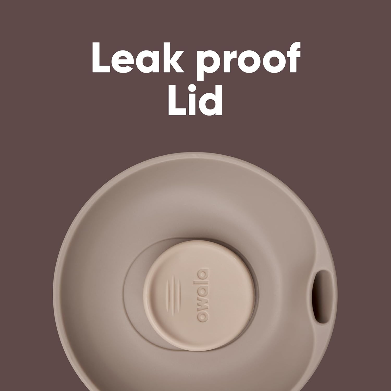 Owala SmoothSip Slider Insulated Stainless Steel Coffee Tumbler, Reusable Iced Coffee Cup, Hot Coffee Travel Mug, BPA Free 12 oz, Tan/White (Vanilla Bean)
