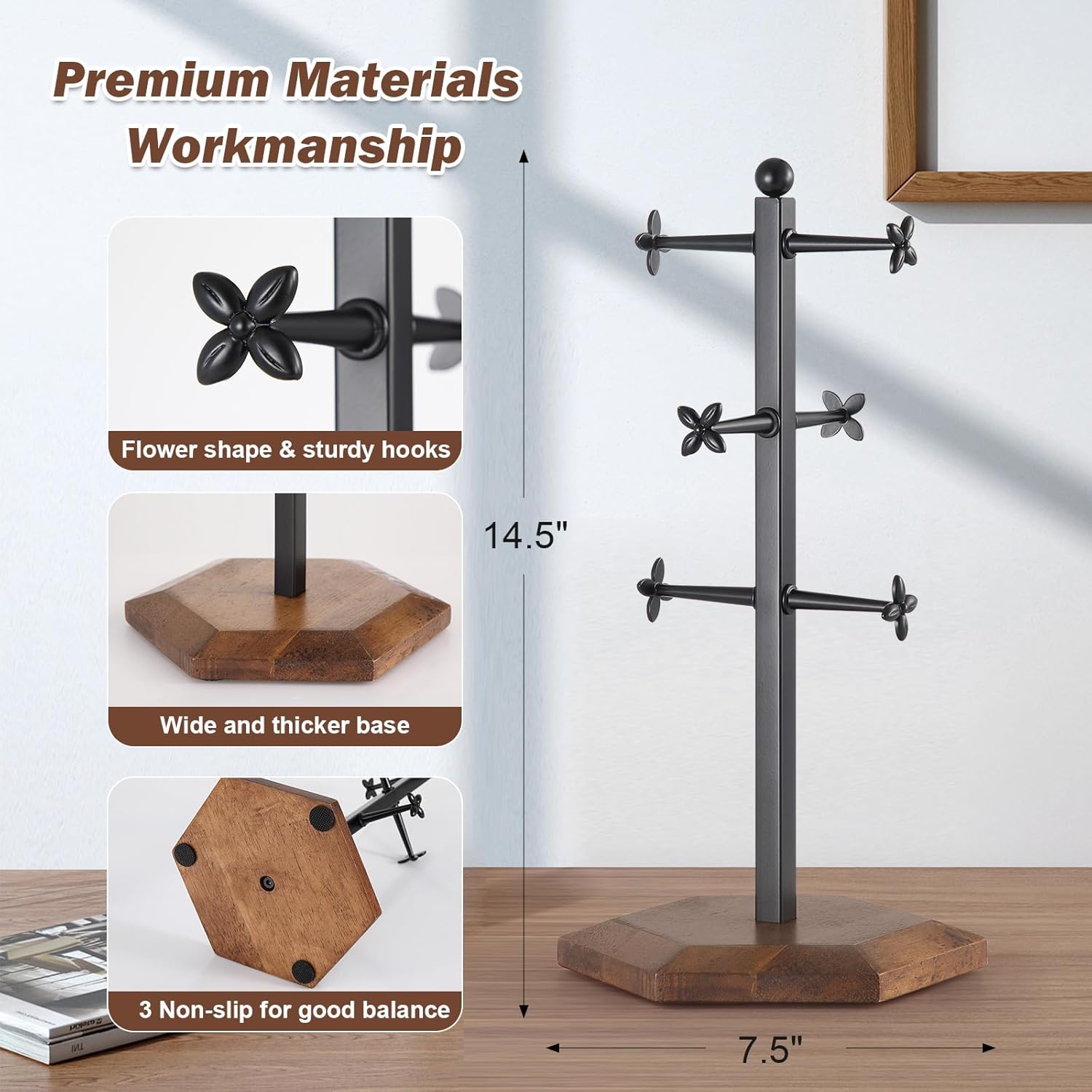 Mug Holder, Countertop Mug Tree, Coffee Mugs & Tea Cup Storage Rack, Coffee Counter Bar Accessory & Kitchen Organizer (Black Vintage Colors)