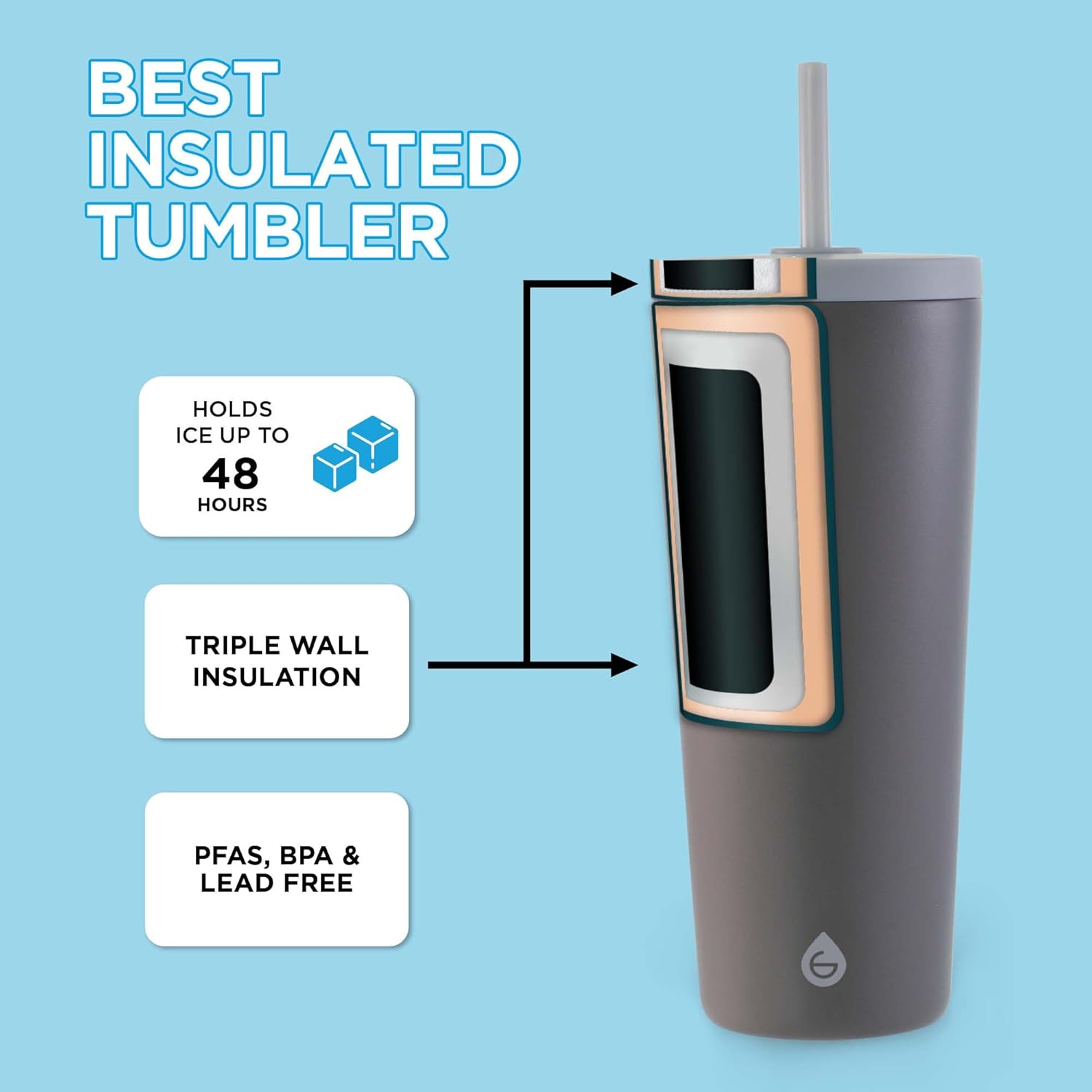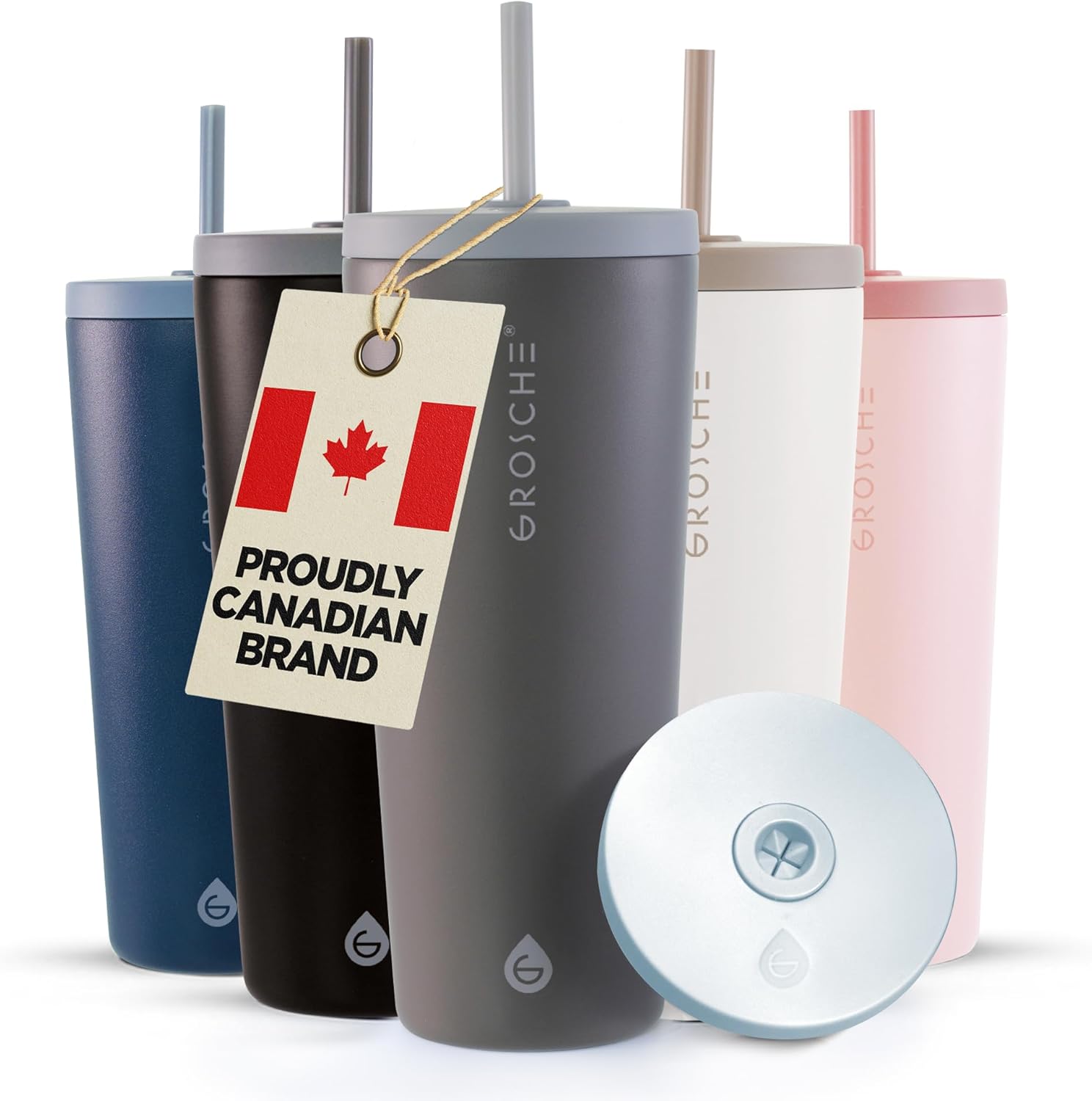 GROSCHE Jasper Insulated Stainless Steel Tumbler With Straw – Travel Cup with Lid, Extreme Insulation & Sleek Design, 23 oz - Grey